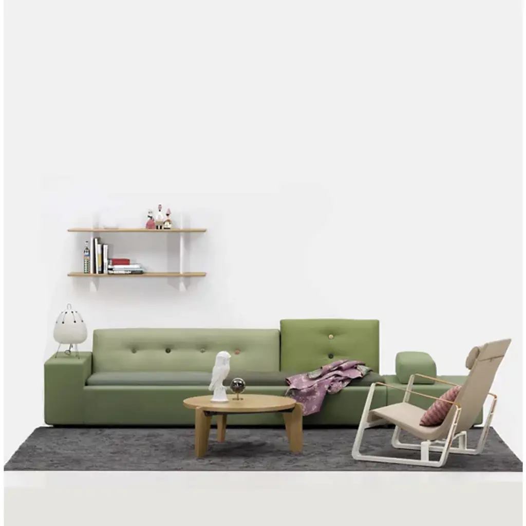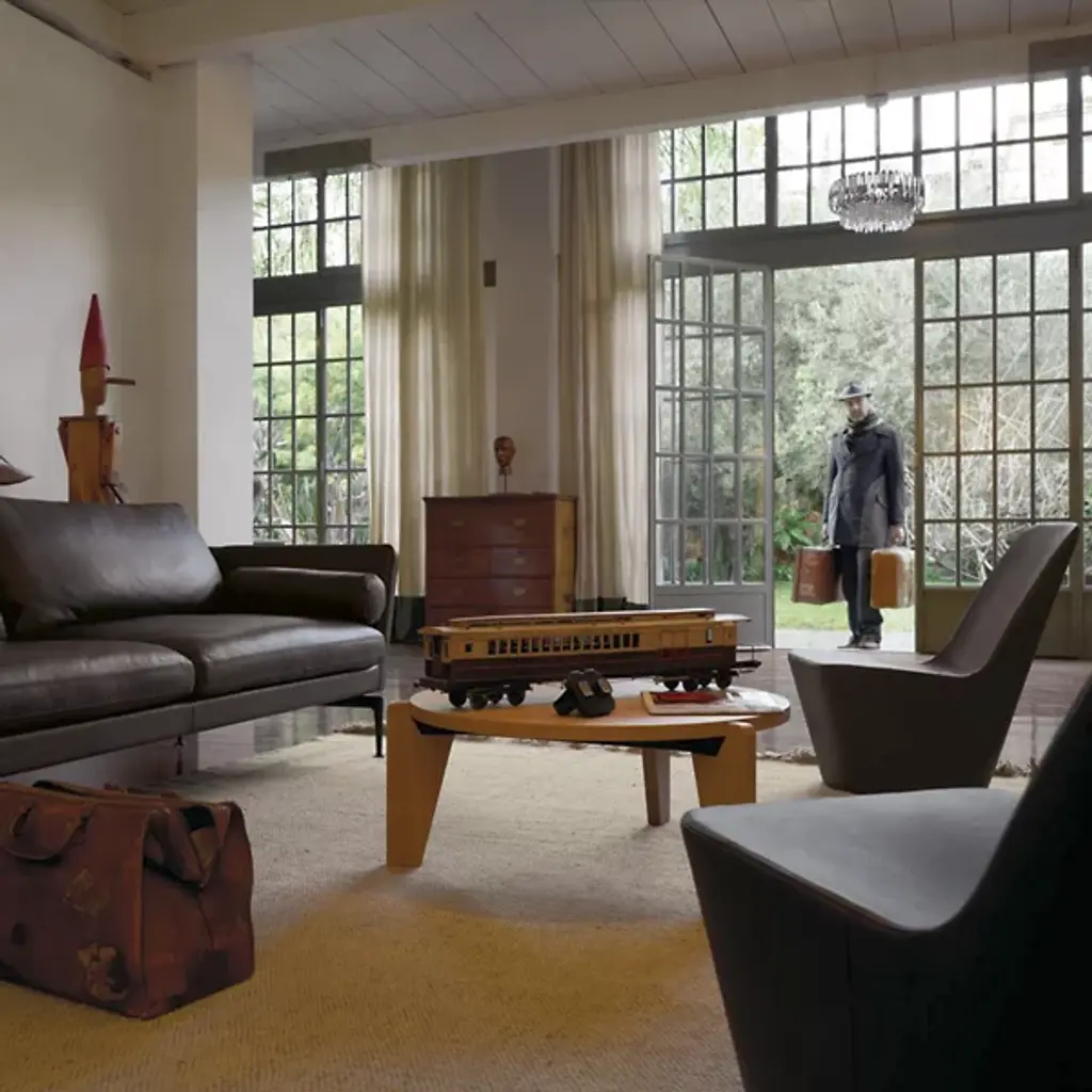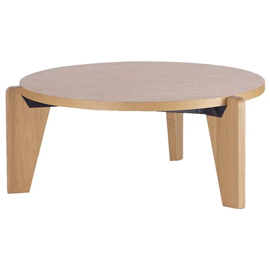 While known mostly for angular lengths of metal in his designs, by the 1940s Jean Prouve started delving into all-wood furniture. An exquisite example of this period, the Vitra Gueridon Bas Coffee Table features a solid round wood top and three wedge-shaped legs. Metal only makes an understated appearance as a connector between the wood pieces.