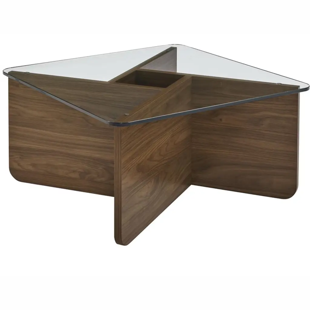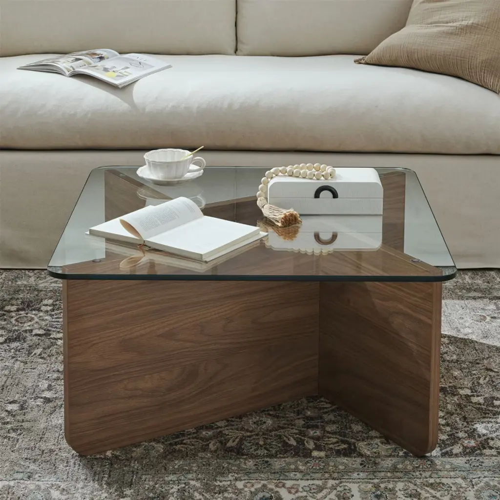 Gulches Mid-century Modern Square Coffee Table - Tempered Glass Top, Living Room Center Cocktail Table For Small Spaces