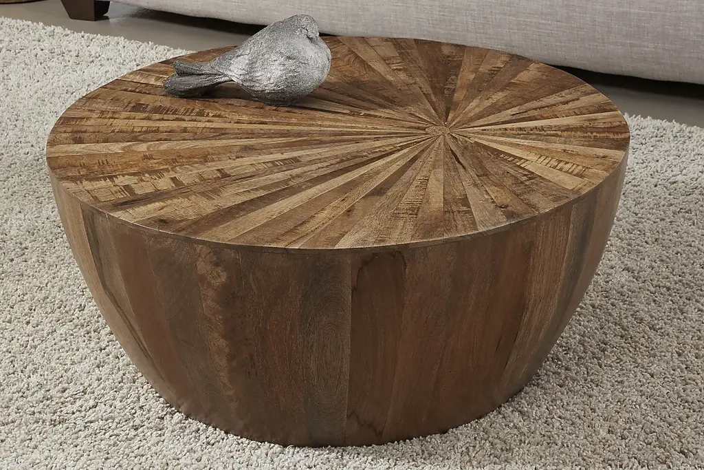Add a touch of unique transitional style to your home with the Gunnison Creek coffee table. Crafted of wood solids, this piece comes in a natural brown finish. It's simple yet modern design not only gives you plenty of room to rest drinks while you entertain, but an eye-catching look your guests will love.