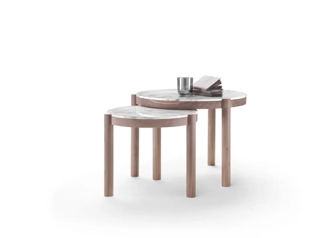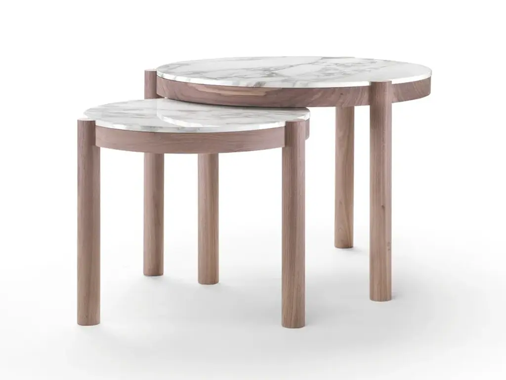 Purity of design and functionality are in the design DNA of this family of dining and accent tables. Sophisticated details, like the leg that inserts into the table top, conceal the complexities of construction under the guise of simplicity. Exquisite combinations of materials are possible between the structure in solid Canaletto walnut and ash and the flush-set top in several kinds of marble: White Carrara, Black Marquina, Calacatta Gold and Emperador. Designed as the perfect complements to the seating options in the collection, the Gustav side tables have bold personality and a flair for standing alone or in groups, where the interplay of overlapping planes is even more evident.TECHNICAL SPECIFICATIONSFrame in solid wood canaletto walnut, canaletto walnut extra, canaletto walnut stained coffee. Ashwood stained teak, stained ebony, stained wenge, stained cherry, stained walnut, stained coffee, stained brown Top in marble: glossy white carrara, glossy black marquinia, glossy calacatta oro, mat calacatta oro, glossy emperador, mat emperadorMATERIALS Frame: wood finishes Top: marble finishes