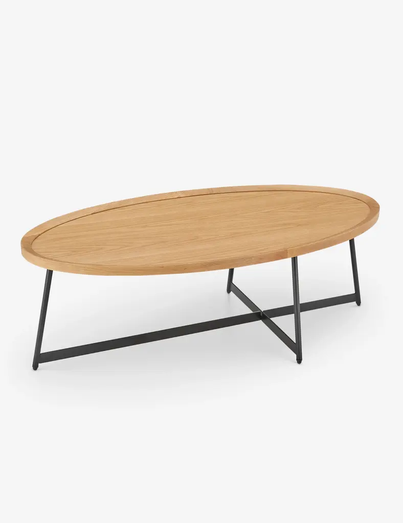 The Gweneth collection brings trend-forward style in an oval coffee table design with a mixed material construction. The sleek wood top features a raised rim that highlights the curvature of this coffee table while the asymmetry of the black steel base provides contrast and industrial appeal.