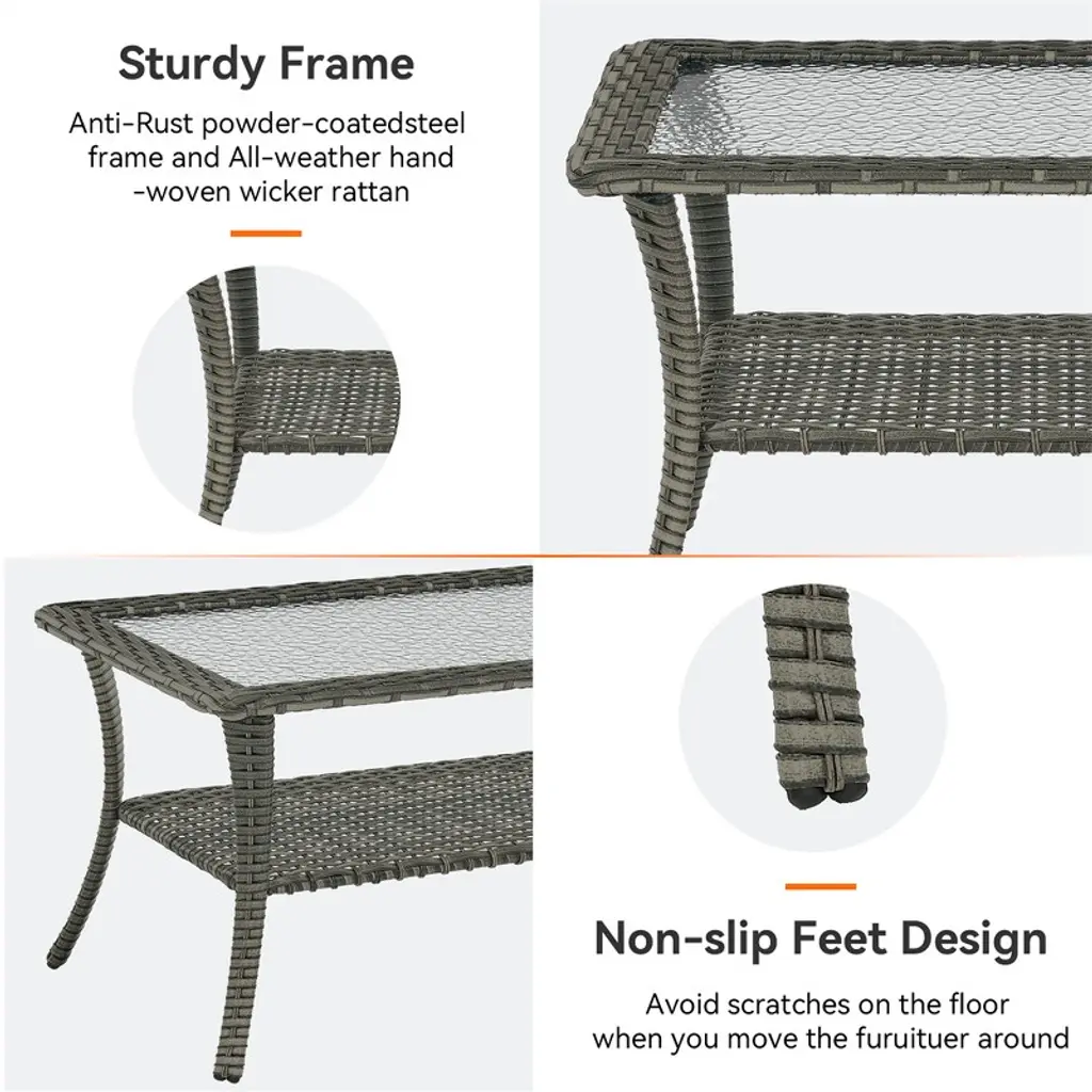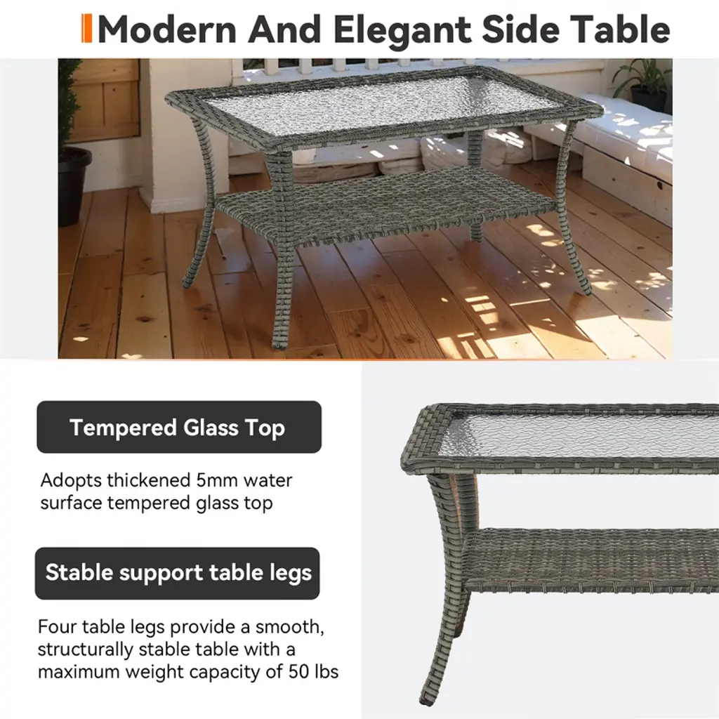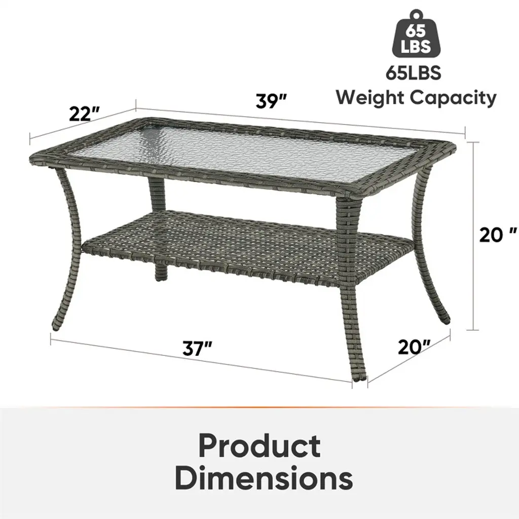 Gymojoy Outdoor Coffee Table With Tempered Glass Top