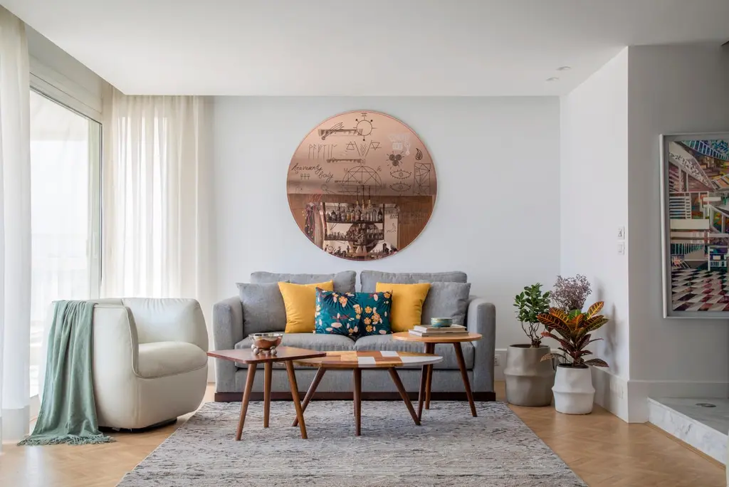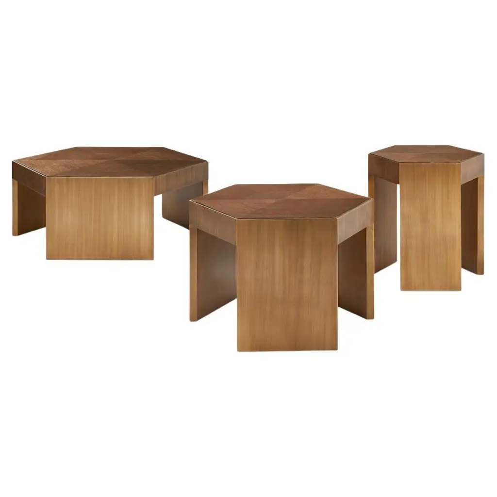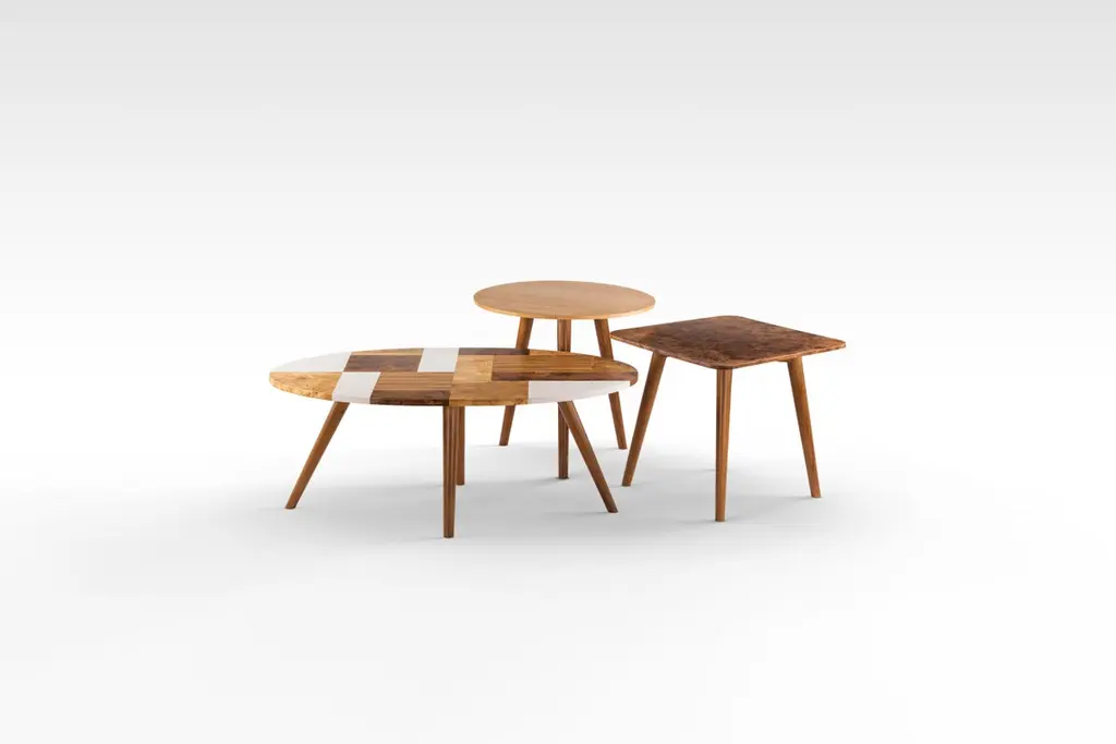 Hand-Crafted Patchwork Coffee Table with Maple, Zebra, Oak & Lacquered Veneers.Our Patchwork coffee table set is hand-crafted with maple, zebra, oak and lacquered veneers to create a unique look. You can mix and match these tables to create a bold centerpiece or move them around to accommodate guests, or even use as side tables.The individual dimensions of the tables are:Oval 60D x 100W x 40HSquare 50D x 50W x 45HRound 55R x 50H.