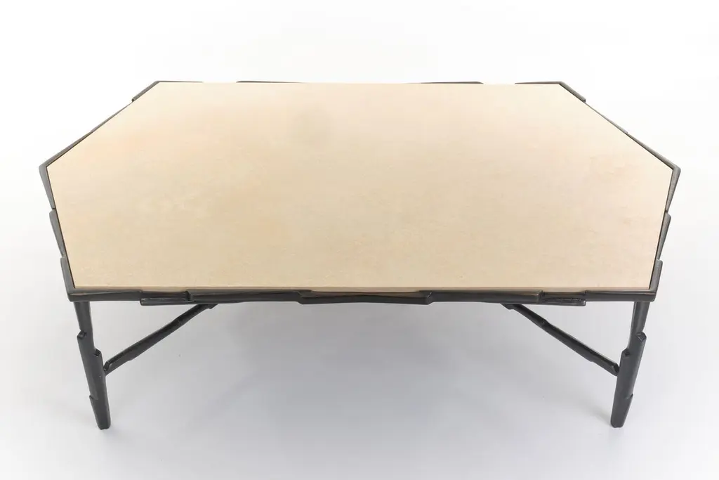 Handcrafted Linea No.2 Coffee Table In Bronze Plaster Finish With Travertine Top