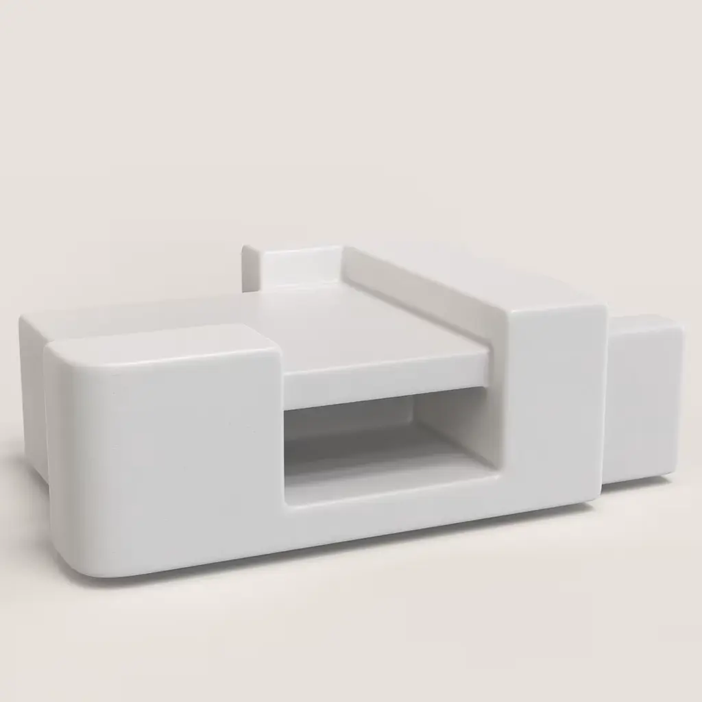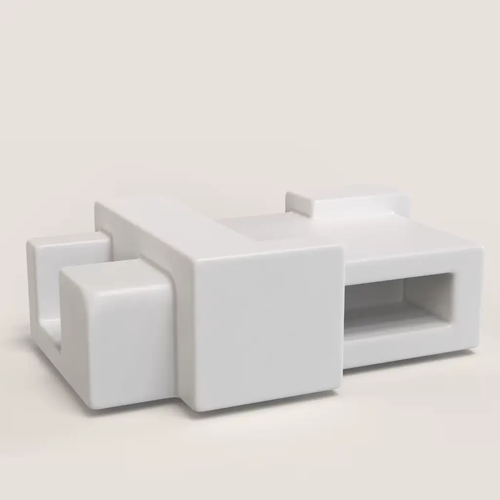Hara V1 is a container low table made of resin. Hara is a painted and spray-coated polystyrene monumental language. We sculpted the material to create recesses for the objects, we picture the Haras being inhabited by numerous artifacts. Objects are handcrafted in order to be unique. Limited edition of 150. Every piece has a marked and progressively numbered metal plate, as an authenticity certificate. We consider the act of collecting a sustainable cultural statement.