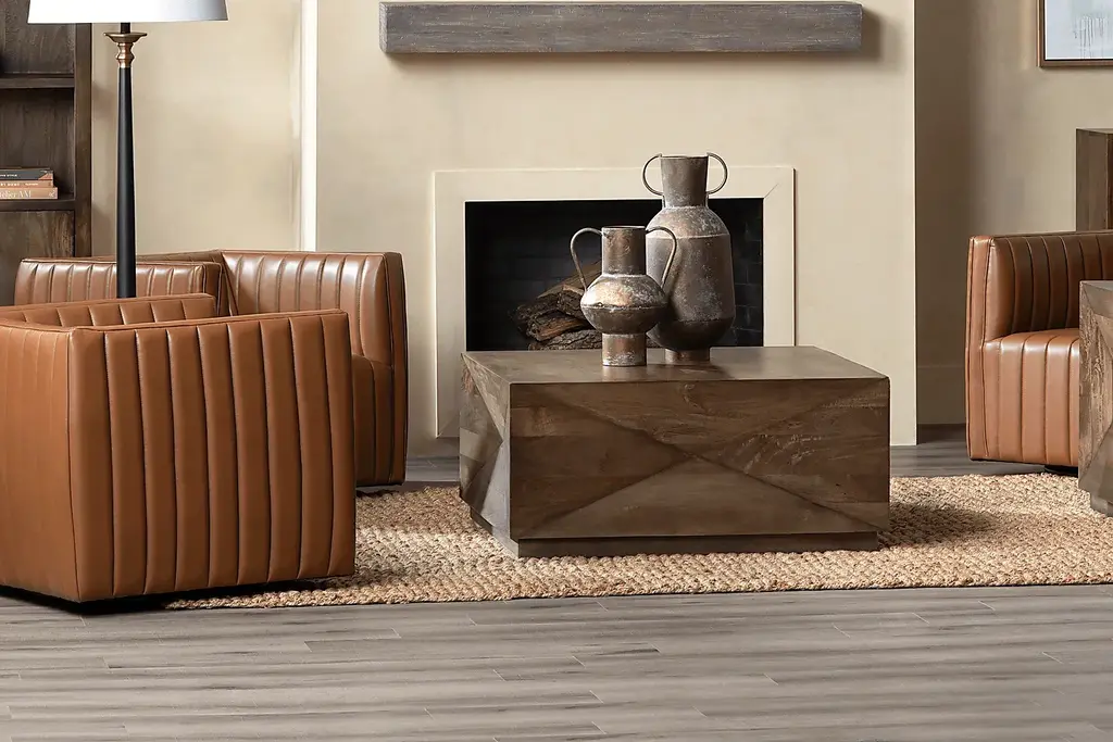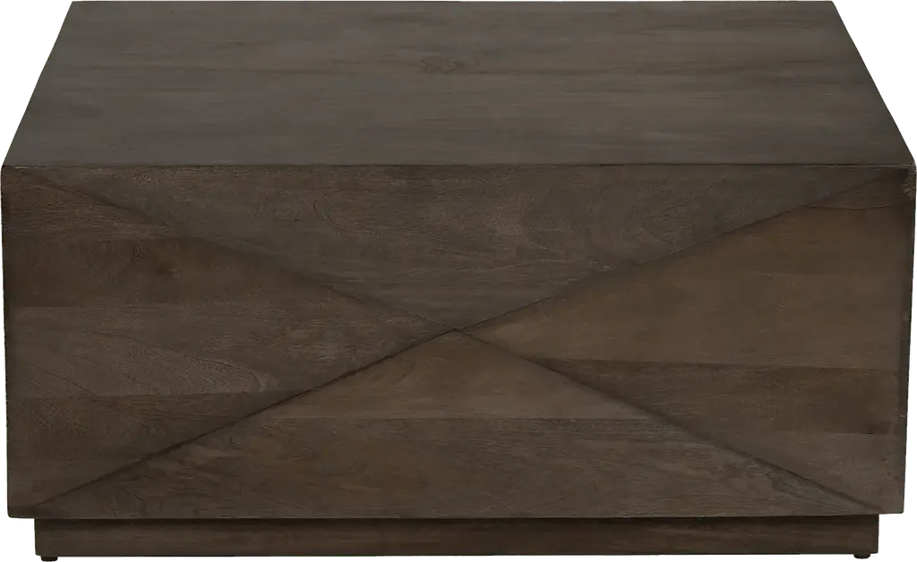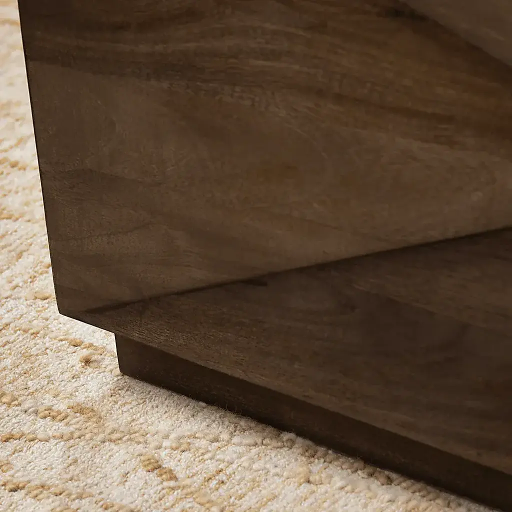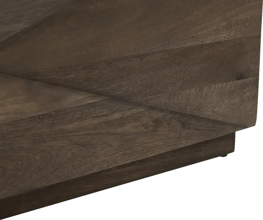 Time slows and the spirit relaxes when the Harker cocktail table's irresistible warmth and entrancing angles hold the space. The bold transitional presence of this solid mango wood accent can be felt from its rich brown finish and inverted pyramid sides to its commanding plinth base.