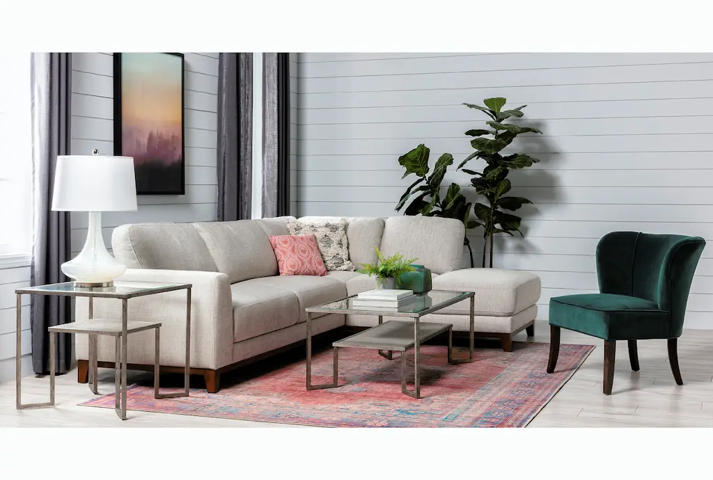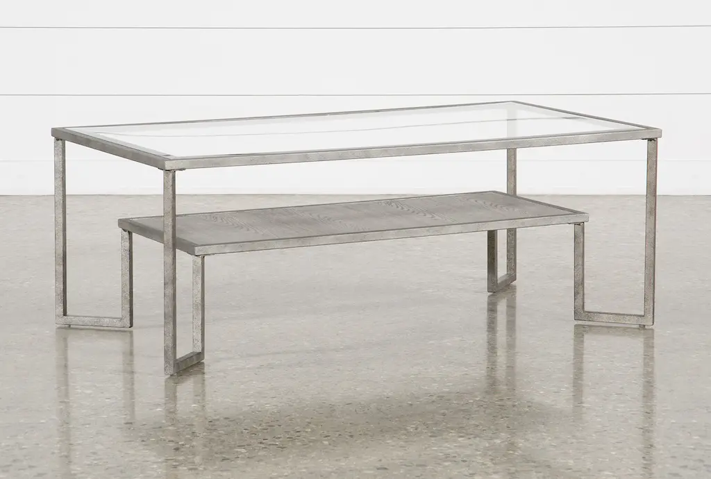 Uniquely designed to bring style and function to your living room, our Harlow coffee table will elevate anything you put on display. In addition to a top glass tier, this piece boasts a secondary tier made with oak veneer, plus a sturdy metal frame in a zinc finish. Together, these materials create a chic modern spot for magazines, books and accessories.