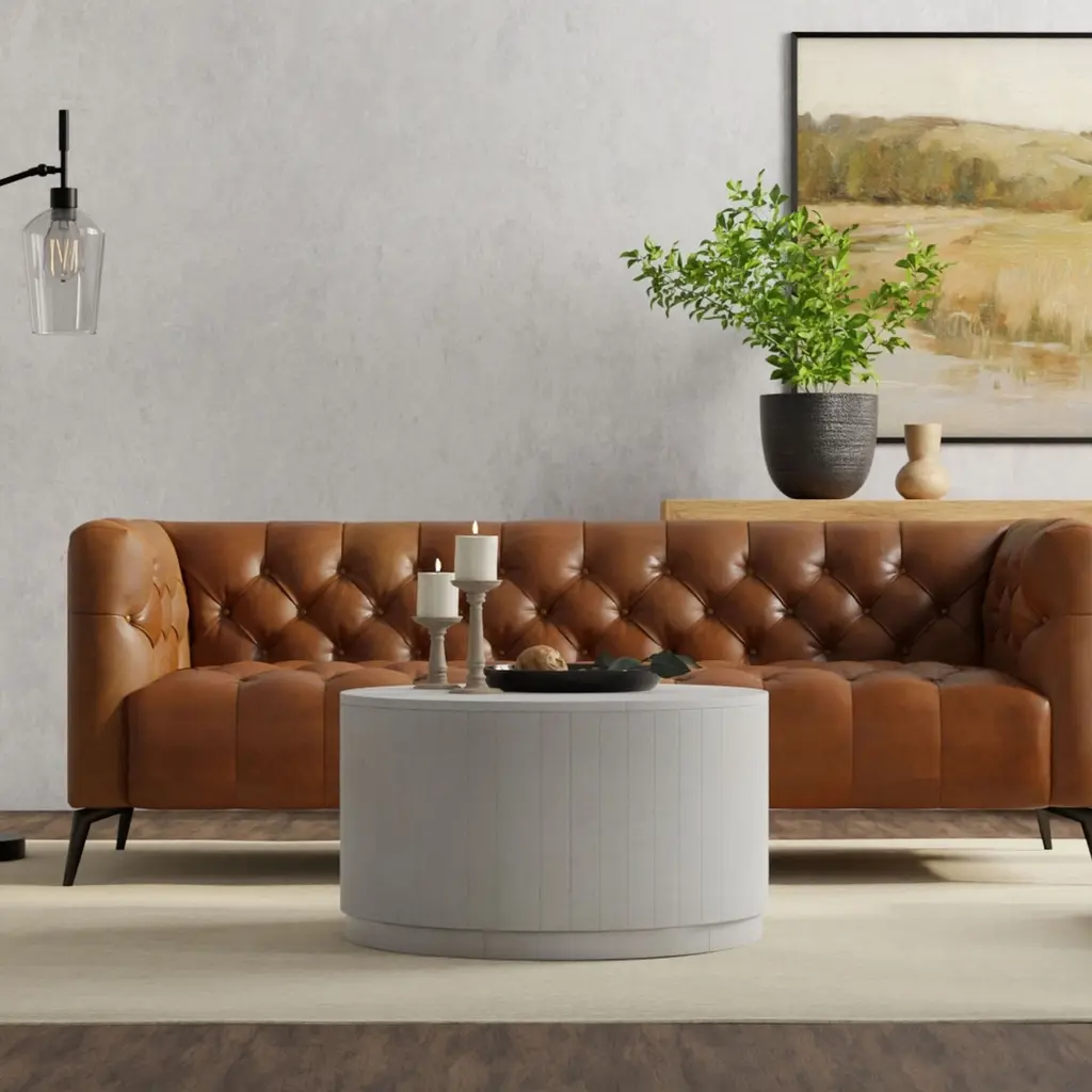Handcrafted in India of sturdy mango wood, our round coffee table has a sleek, streamlined block silhouette and a footed base. A versatile cocktail table that seamlessly suits a wide array of home decor tastes, it comes in a selection of neutral finishes. This small-space-friendly surface has subtle, special variations in the natural grain pattern that make each table one of a kind.