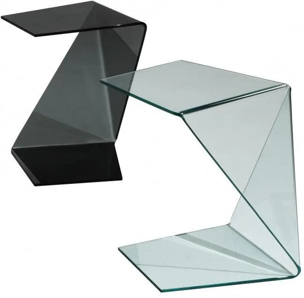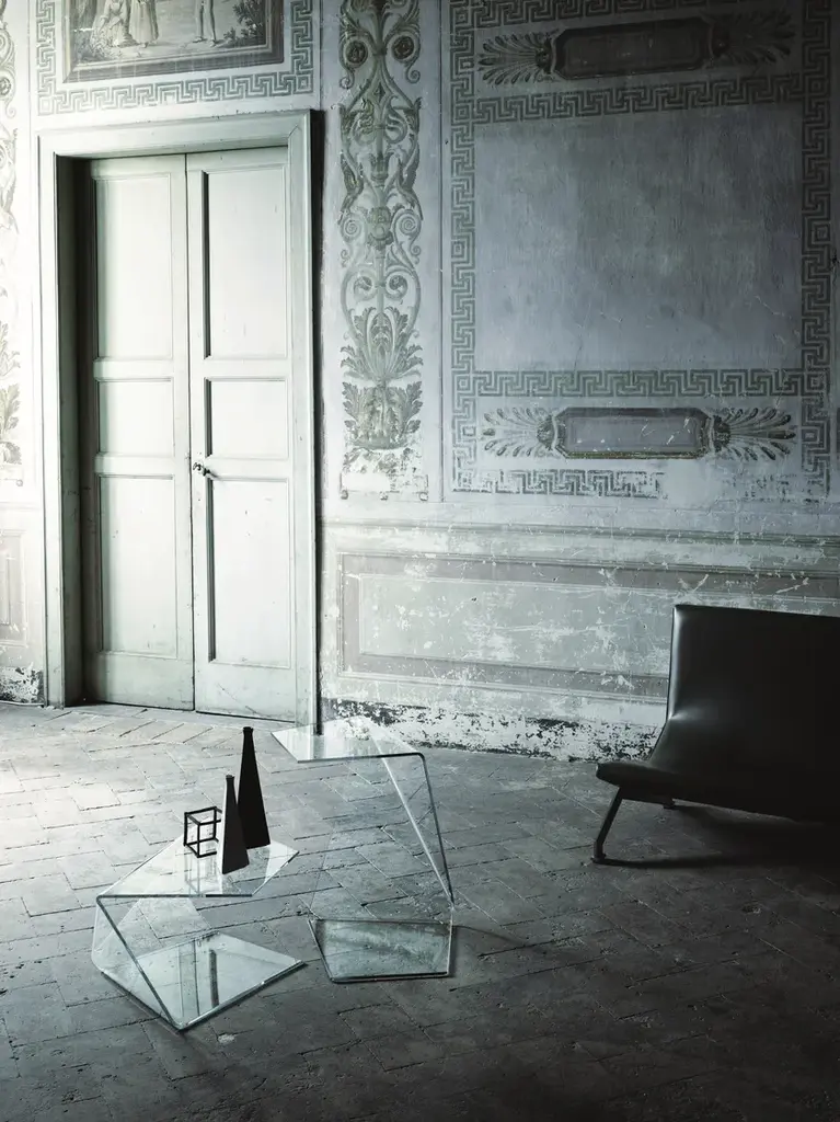 Harold and Maude is a low tables in transparent extralight glass, available in two different sizes. A complex and innovative curvature, characterized by particularly daring angles and gradients, confers great dynamism and plasticity to the low tables. This technical virtuosity gives the low table an extremely light appearance.