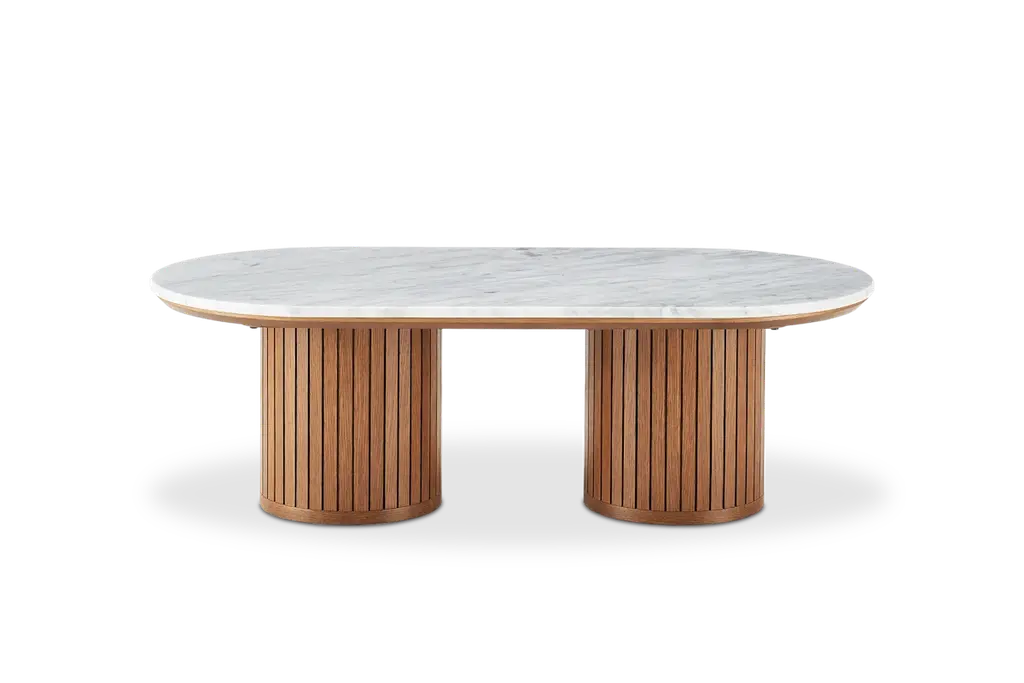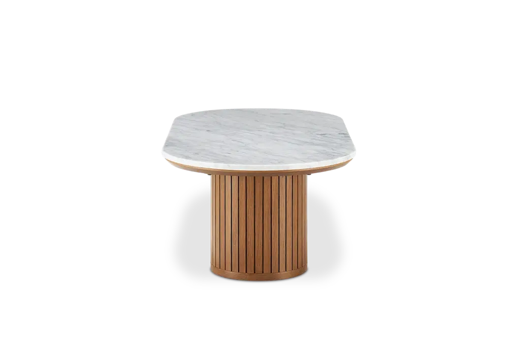 Where form meets obsession. Harper combines a sculptural tambour base with an Italian Carrara marble top that has unique veining, just like the life you're building around it.