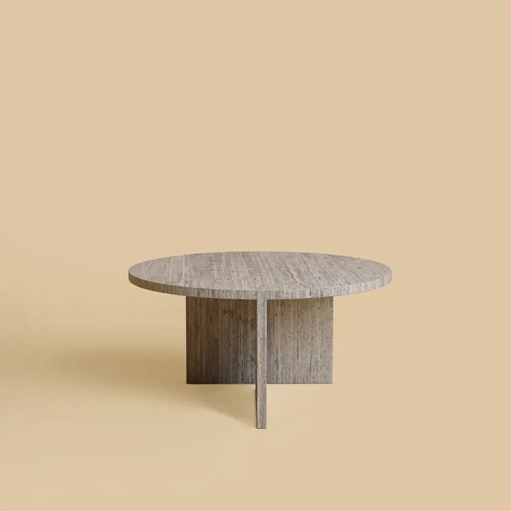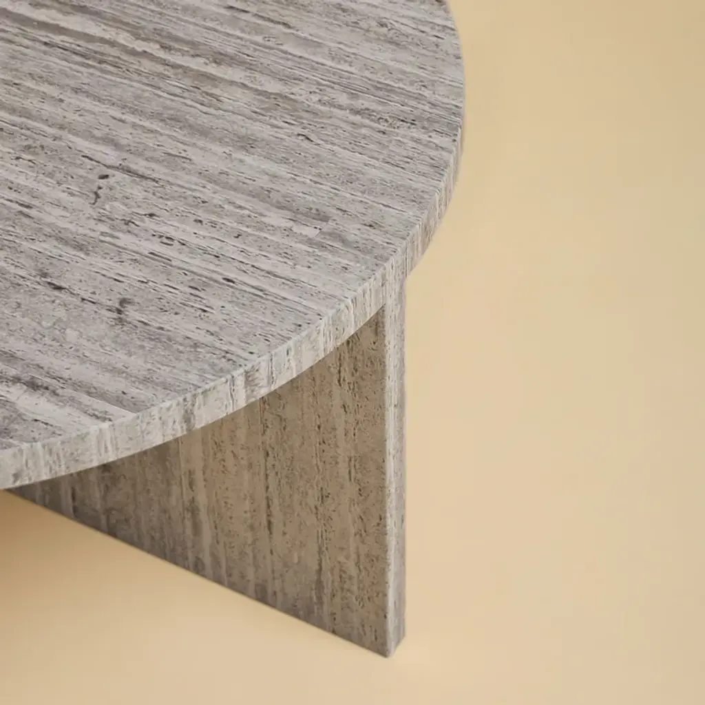 Hashi is a coffee table made entirely of travertine. The top is circular and 60cm in diameter, the legs are made from two glued travertine boards in which one part is interlocked on the top. Available in two finishes: Roman Travertine and Titanium Travertine.The Hashi coffee table, a luxurious statement piece handcrafted in Italy using the finest marble or travertine. This elegant coffee table is designed to elevate any living space with its sleek, minimalist aesthetic and premium craftsmanship. The smooth top surface not only adds sophistication but also provides durability, making it perfect for everyday use. Whether placed in a modern living room or a contemporary lounge area, the Hashi coffee table brings a touch of Italian elegance and timeless beauty to your home. Its clean lines and natural stone patterns make it a versatile centerpiece that complements a wide range of interior styles, from modern to classic. The Hashi coffee table is more than just a functional piece—it's an artistic addition to any space.