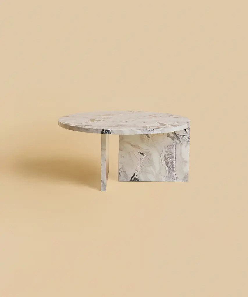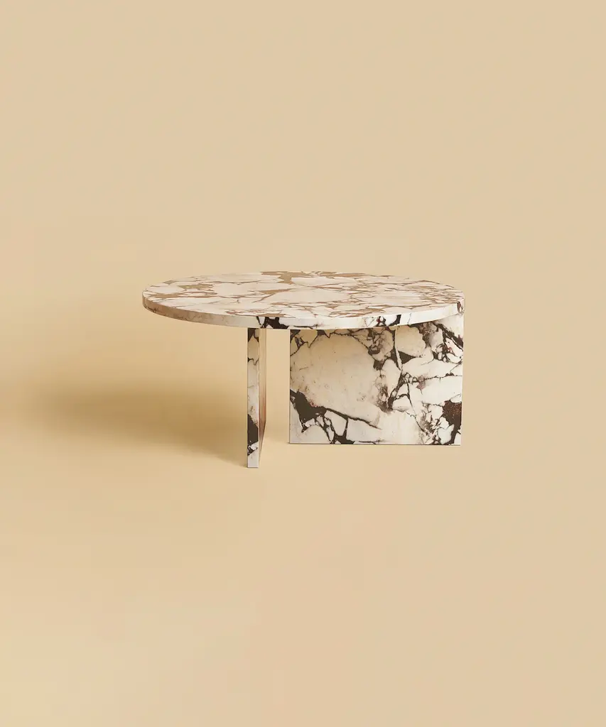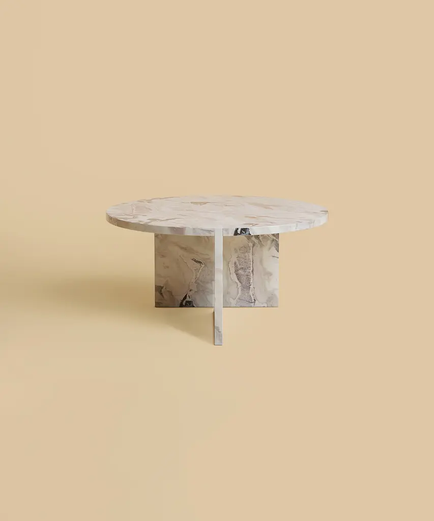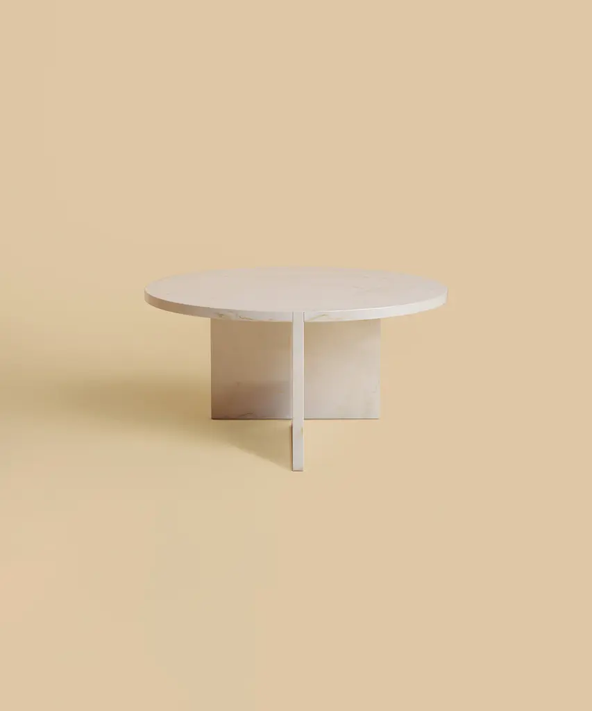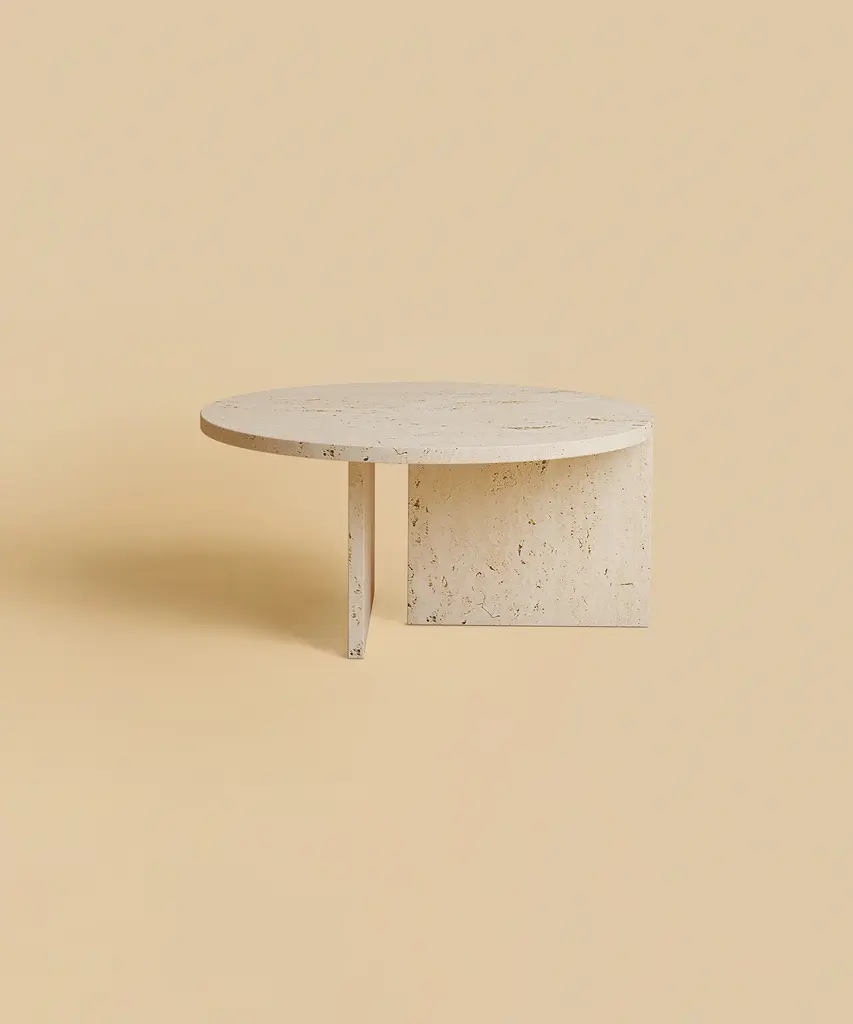 The Hashi coffee table is made entirely of Travertine or marble. The top is circular and has a diameter of 23.6 inches, and the legs are made from two slabs in which one part is interlocked on the top. Founded by Emanuela Terraneo and Alessandro Pozzi, Lebanto designs and produces modern and refined furniture in Cantù, Italy.