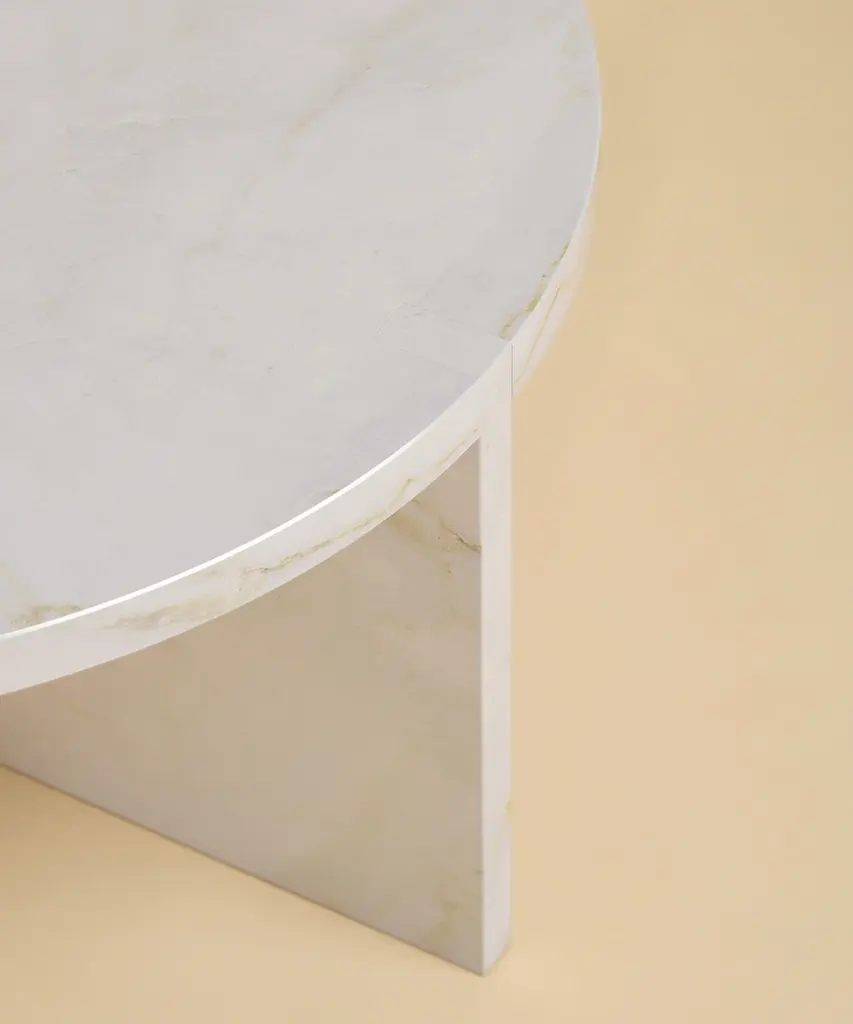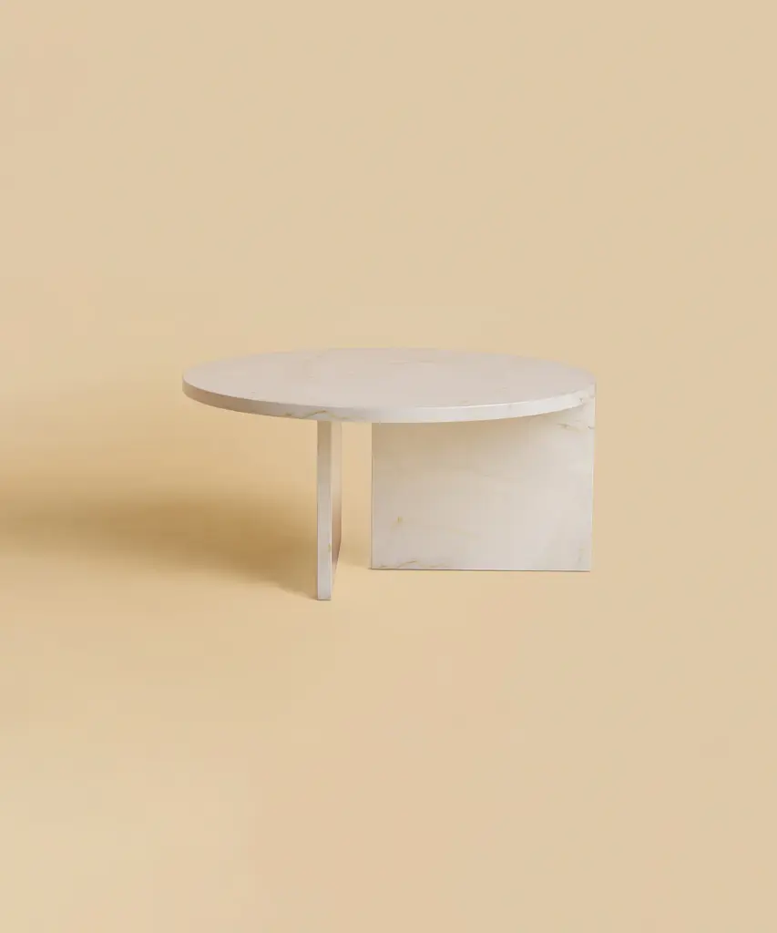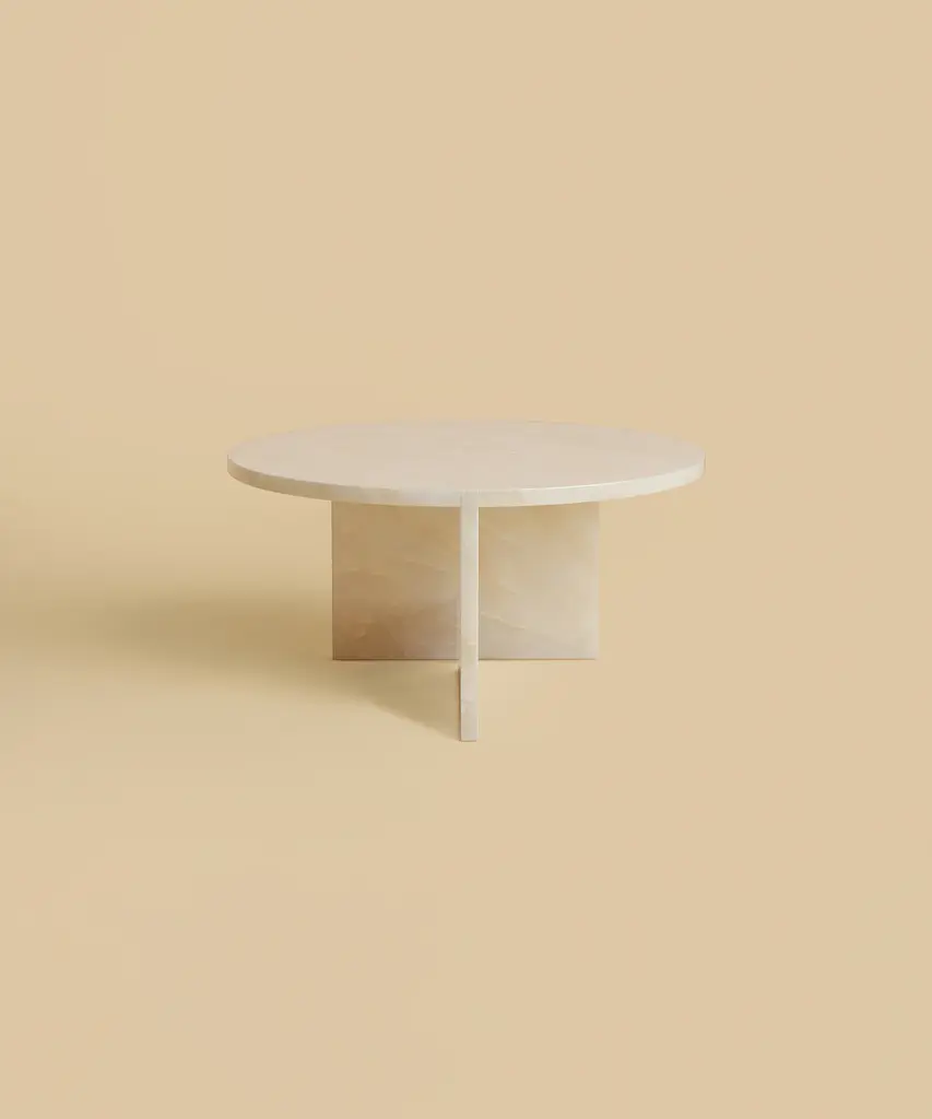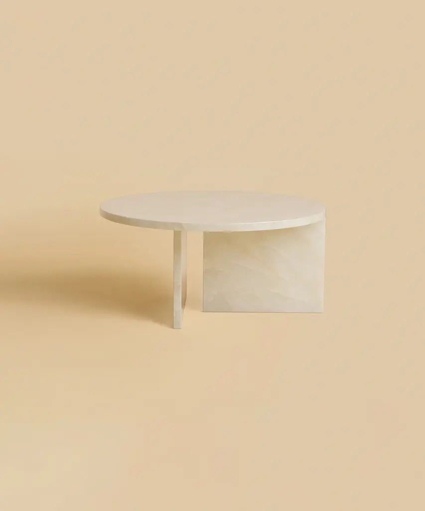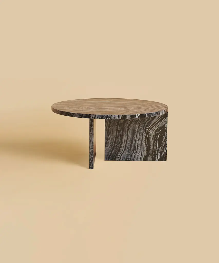 The Hashi coffee table is made entirely of Travertine or marble. The top is circular and has a diameter of 23.6 inches, and the legs are made from two slabs in which one part is interlocked on the top. Founded by Emanuela Terraneo and Alessandro Pozzi, Lebanto designs and produces modern and refined furniture in Cantù, Italy.