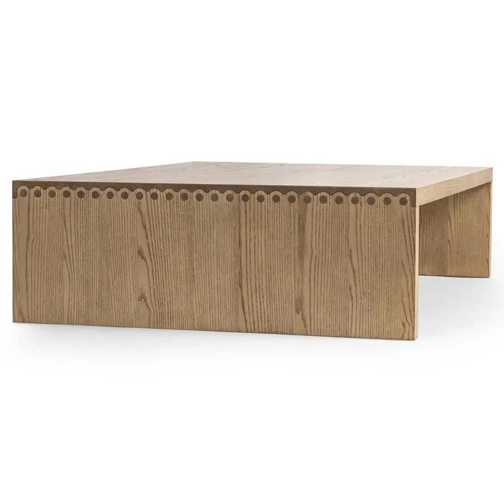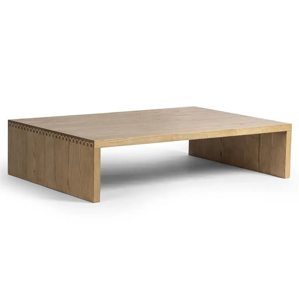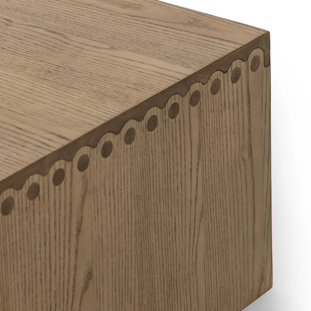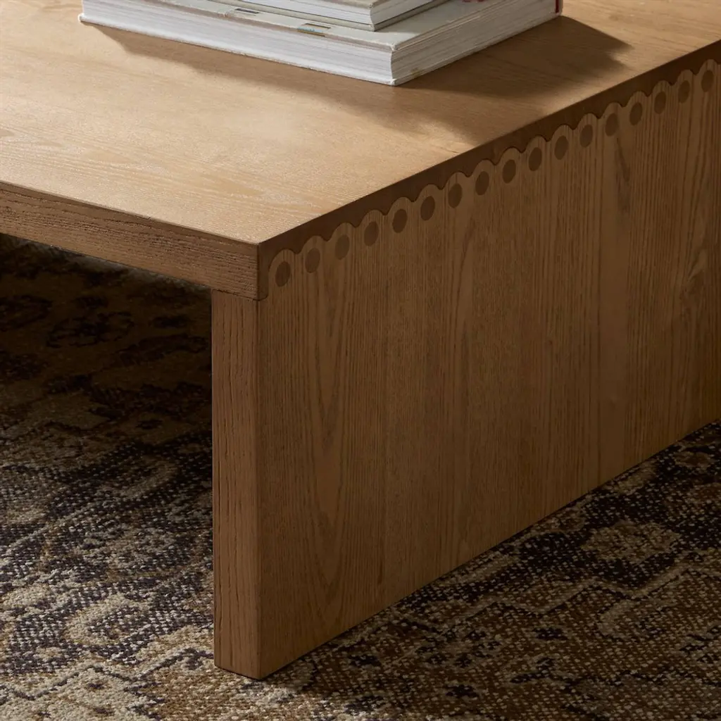 A design collaboration by Amber Lewis and Four Hands.Simple waterfall shaping defined by subtle details. Grain-rich ash offers plenty of movement across the wood, meeting in a prominent scallop cutout detail on each edge for a bold addition of character.