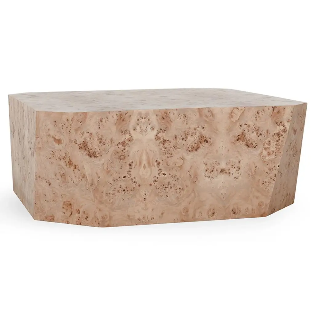 Hawkins Modern Classic Brown Burl Square Block Coffee Table