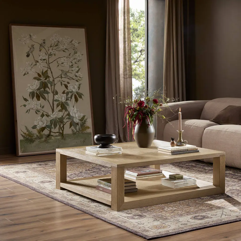 The Hendrix Square Coffee Table is a beautifully crafted piece that brings a light, clean look to your living room. Its simple square shape is made from high-quality oak veneer, offering a timeless and elegant design. The table features lower shelving, providing bonus storage and a perfect display area for your favorite books and decorative items. This versatile coffee table is an ideal addition to any living space, combining functionality with a sophisticated aesthetic.
