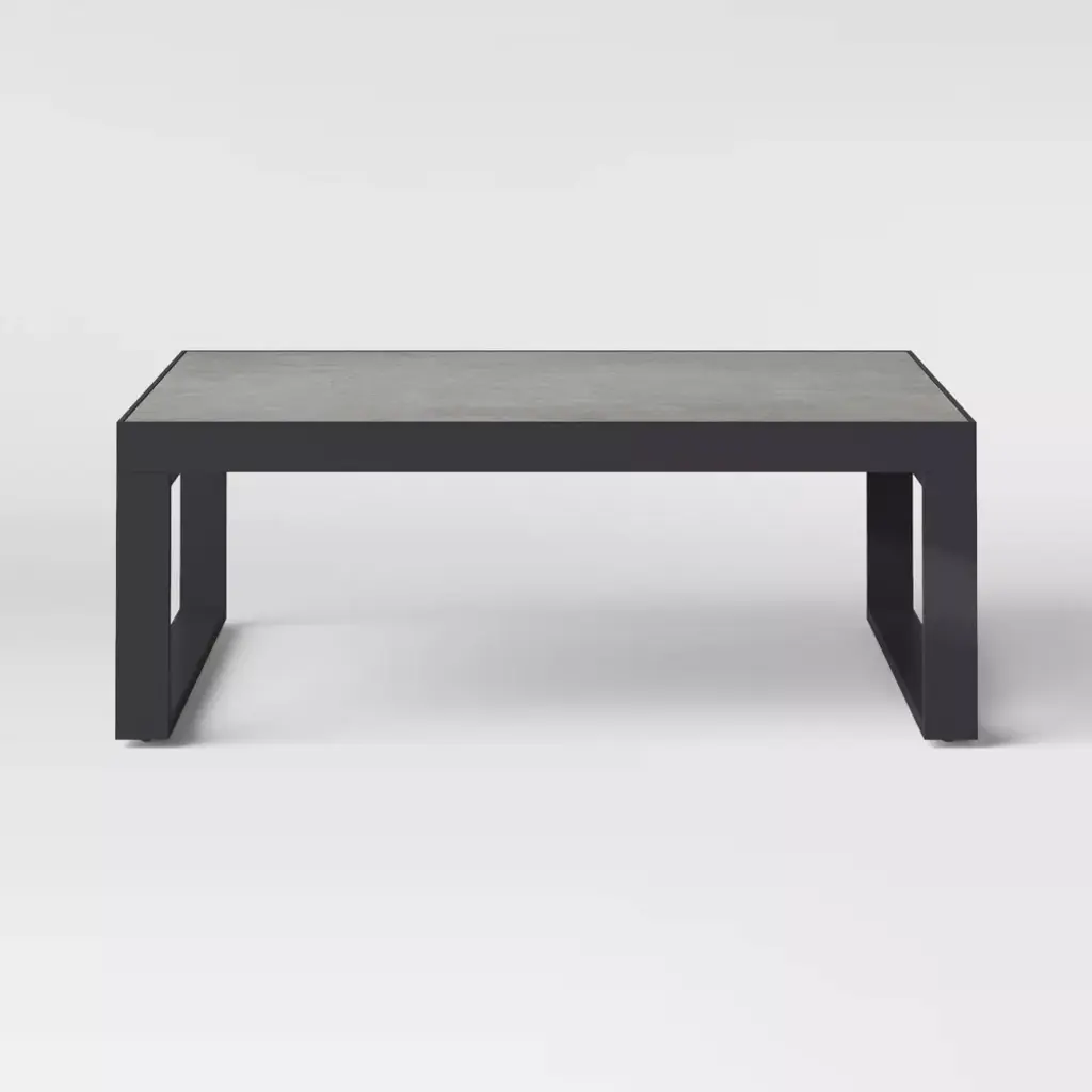 Create a chic al fresco seating area with the Henning Square Patio Coffee Table from Project 62™ as part of your outdoor furniture. This outdoor coffee table has a rectangular silhouette with sleek angles and a solid black color for a simple yet striking look that's enhanced by the contrast of the gray tabletop. The table sits just a foot off the ground for a low profile that works well with a variety of seat types, and a 31.89-inch by 31.89-inch tabletop provides plenty of space for snacks and beverages. Plus, a weather-resistant finish helps ensure the coffee table maintains its look even if left uncovered during wet weather. 1962 was a big year. Modernist design hit its peak and moved into homes across the country. And in Minnesota, Target was born — with the revolutionary idea to celebrate design for all. Project 62 embodies this legacy with a collection of modern pieces made for everyday living.