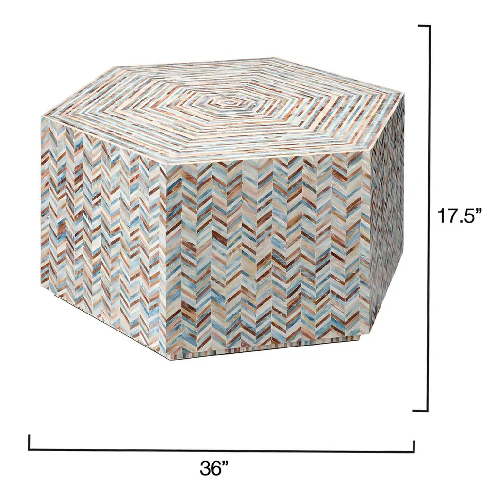 Hepburn Mother Of Pearl Hexagon Coffee Table, Multicolor