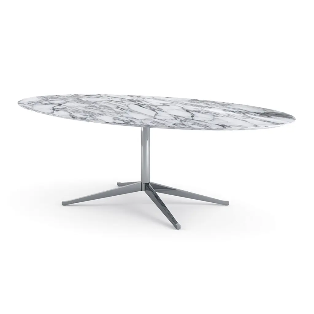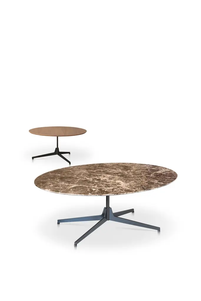 The project takes its inspiration from the concept of our memory, reimagining simple and iconic forms with echoes from the past. Central to the design is the upright hexagonal structure typically used in building construction that, in this particular context, is interpreted as a joint onto which the feet are attached perpendicularly. This style detail is reminiscent of 1950’s furniture design. The base of the table is painted finished metallic wire drawn and the top in marble. In painted wire drawn with hexagonal section and feet in steel blade. Thickness top 10 mm with tapered edge.Born in Venice in 1950, he has always shown interest in developing the arts from the beginning with a strong attitude for art studies. The form and color’s passion were expressed and strengthened through his studies under the prestigious guide of Alberto Viani, at the Accademy of Beautifull Arts in Venice. In the mid-seventies he participates actively at the first course of industrial design promoted by the Faculty of Architecture. The contact and teaching with those undisputed “masters” of decorative arts, help to shape the eclectic personality of the designer, who creates interesting projects and exhibits in decorative arts exhibitions, held in various countries of Europe. During the following years, is revealed as a designer with considerable creative abilities and aesthetic sense: the projects are never the result of trivial technical insight, but the perfect synthesis of form, function, industrial processing and enhancement of the expressive capacity of materials, that compose the same project. This is why the artistic creative process is not an end in itself, but as the scope of everyday objects’ development and production. The simplification to one side, and the choice and the definition of the details of the project to the other side, define the dictates of his way to design.Additional information:Material: Marble, metalTop finish: Noir antiqueFrame finish: Matt blackDimensions: Ø 84 x 40 H cmAvailable in other size option: SmallAvailable in other shape option: OvalAvailable in other top finish options: White carrara, emperador dark, wood