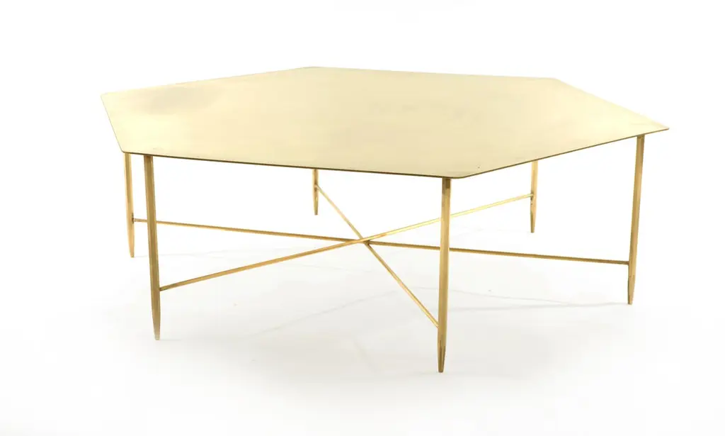 Hexagonal Solid Brass Coffee Table With Hexagonal Profile Legs
