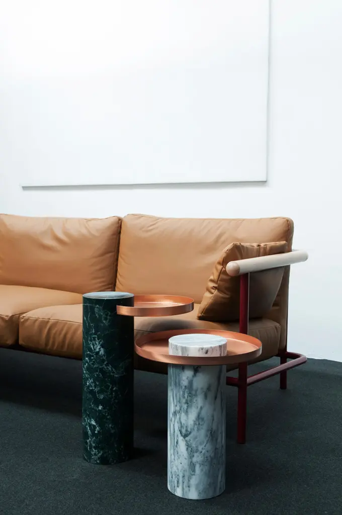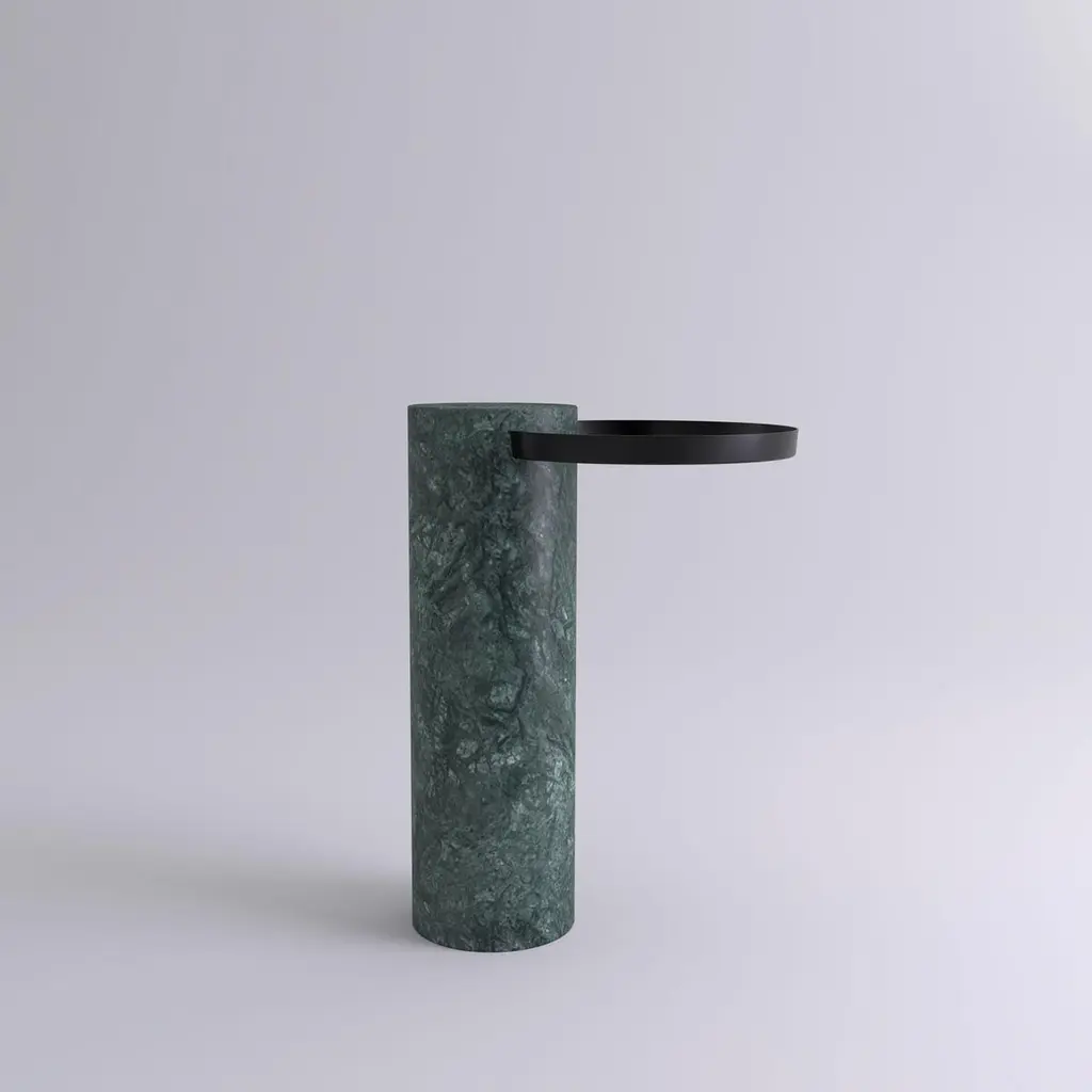 High indian green marble contemporary guéridon, Sebastian HerknerDimensions: D 42 x H 57 cmMaterials: Indian Green marble, black metal trayThe salute table exists in 3 sizes, 4 different marble stones for the column and 5 different finishes for the tray for a virtually endless number of configurations. In addition, salute can be made bespoke with special colors materials and stones.Salute is a family of tables mixing marble and metal for a high visual impact. As an occasional table, Salute is the perfect companion to your iconic armchair or next to a comfy sofa, with its clean lines and yet strong personality and impact. As a combination of tables, it is a sculptural coffee table that you can customize and adapt both in dimensions and colors.Salute is a family of guéridon tables.Each element can be used alone or combined together to play with different heights and formats as well as combinations of materials. The strong presence of the marble column is lightened by the suspended shape of the metal tray.Sebastian Herkner is the rising star of German design. He collaborates extensively with the best Italian and German brands (Moroso, ClassiCon,..) with product that share an tasteful and rigorous simplicity, with a focus on materials and textures.