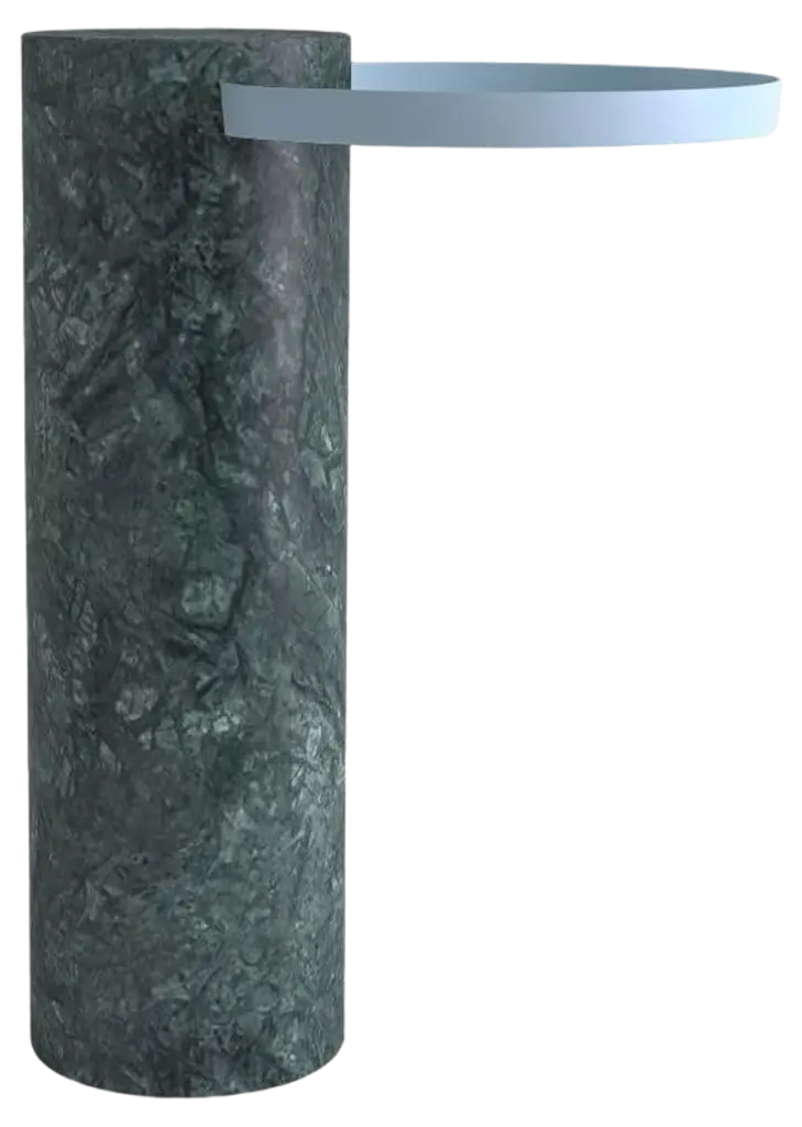 High travertine contemporary guéridon, Sebastian HerknerDimensions: D 42 x H 57 cmMaterials: Travertine marble, black metal trayThe salute table exists in 3 sizes, 4 different marble stones for the column and 5 different finishes for the tray for a virtually endless number of configurations. In addition, salute can be made bespoke with special colors materials and stones.Salute is a family of tables mixing marble and metal for a high visual impact. As an occasional table, Salute is the perfect companion to your iconic armchair or next to a comfy sofa, with its clean lines and yet strong personality and impact. As a combination of tables, it is a sculptural coffee table that you can customize and adapt both in dimensions and colors.Salute is a family of guéridon tables.Each element can be used alone or combined together to play with different heights and formats as well as combinations of materials. The strong presence of the marble column is lightened by the suspended shape of the metal tray.Sebastian Herkner is the rising star of German design. He collaborates extensively with the best Italian and German brands (Moroso, ClassiCon,..) with product that share an tasteful and rigorous simplicity, with a focus on materials and textures.