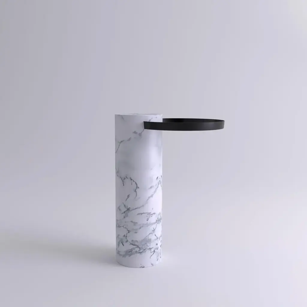 High white marble contemporary guéridon, Sebastian Herkner Dimensions: D 42 x H 57 cm Materials: Pele de Tigre marble, black metal tray The salute table exists in 3 sizes, 4 different marble stones for the column and 5 different finishes for the tray for a virtually endless number of configurations. In addition, salute can be made bespoke with special colors materials and stones. Salute is a family of tables mixing marble and metal for a high visual impact. As an occasional table, Salute is the perfect companion to your iconic armchair or next to a comfy sofa, with its clean lines and yet strong personality and impact. As a combination of tables, it is a sculptural coffee table that you can customize and adapt both in dimensions and colors. Salute is a family of guéridon tables. Each element can be used alone or combined together to play with different heights and formats as well as combinations of materials. The strong presence of the marble column is lightened by the suspended shape of the metal tray. This piece is attributed to the mentioned designer/maker. It has no attribution mark and no official proof of authenticity, however it is well documented in design history. I take full responsibility for any authenticity issues arising from misattribution