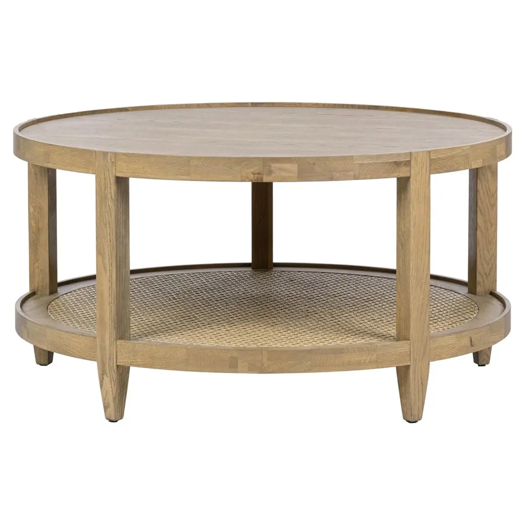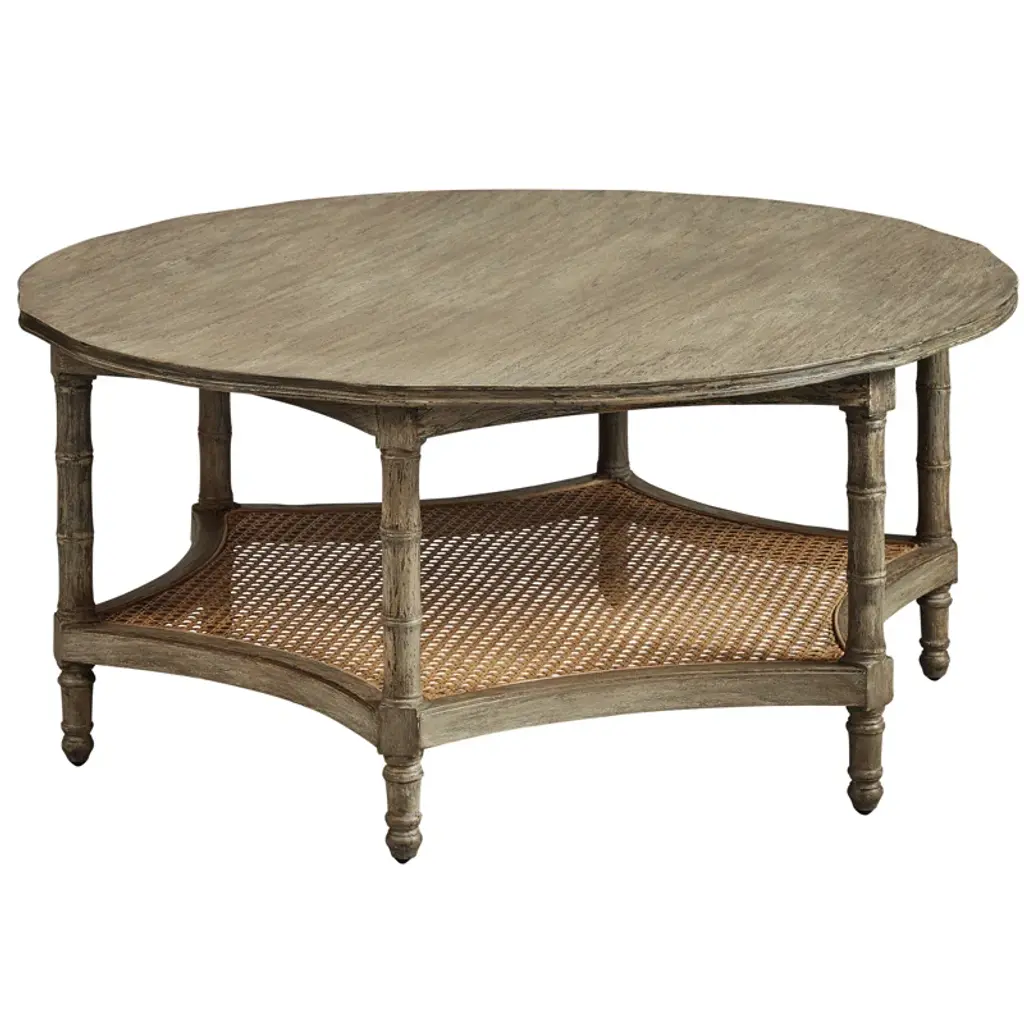This elegant Coastal style table features the Himlaya finish, a round wood top with a raffia-wrapped apron, adding warmth and sophistication. The shaped stretcher connects its round, tapered legs, while slightly textured pewter finish ferrules provide a refined touch of contrast.Ideal for living rooms or sitting areas, this table combines practicality with a luxurious aesthetic. Its timeless design and versatile style make it an effortless addition to any elegant interior.Dimensions: 40" W x 40" D x 18" H