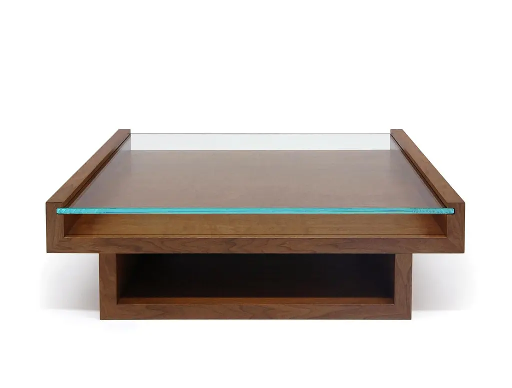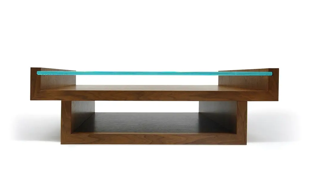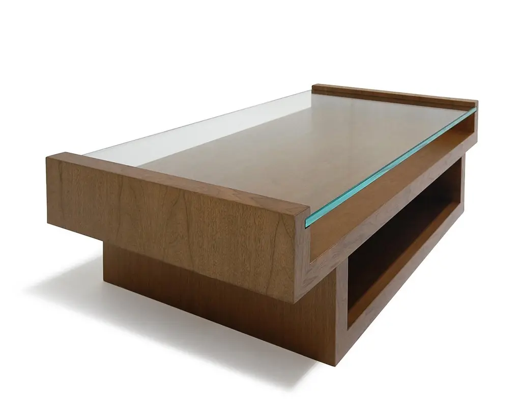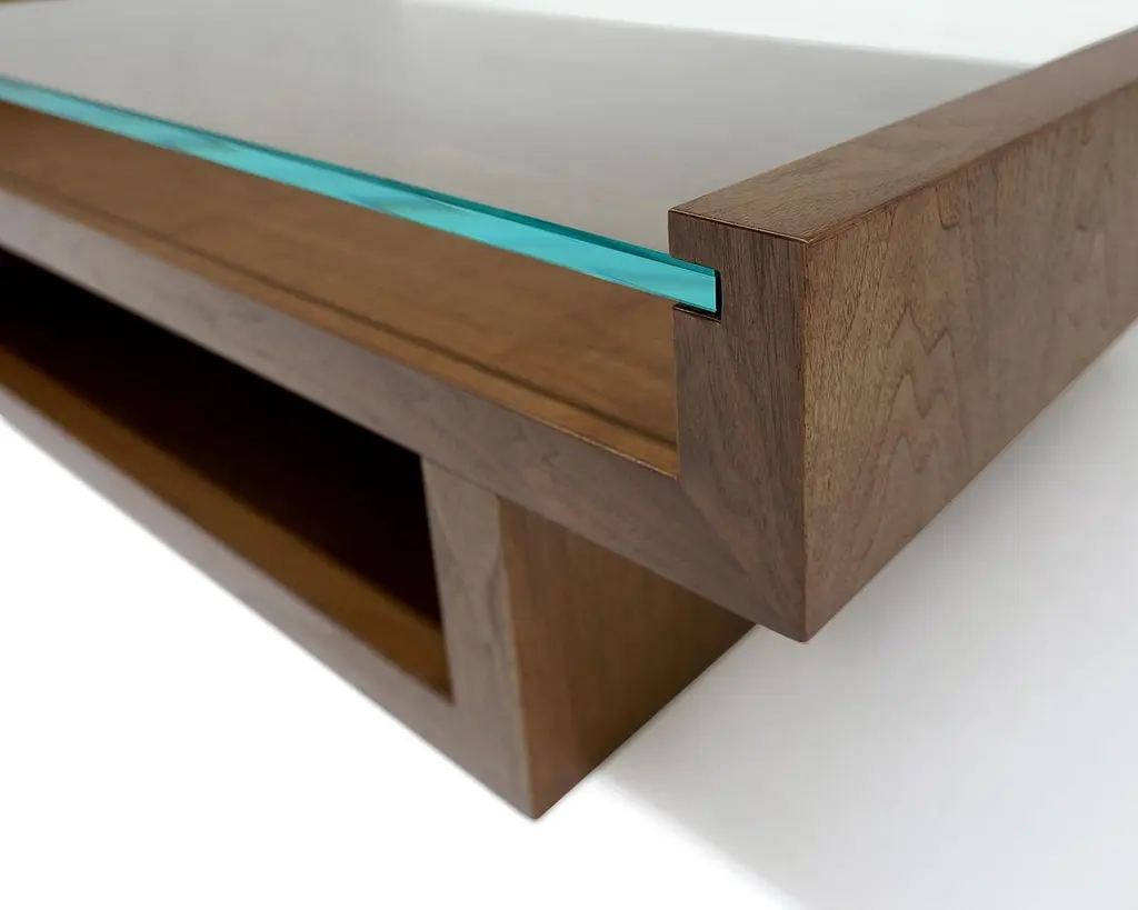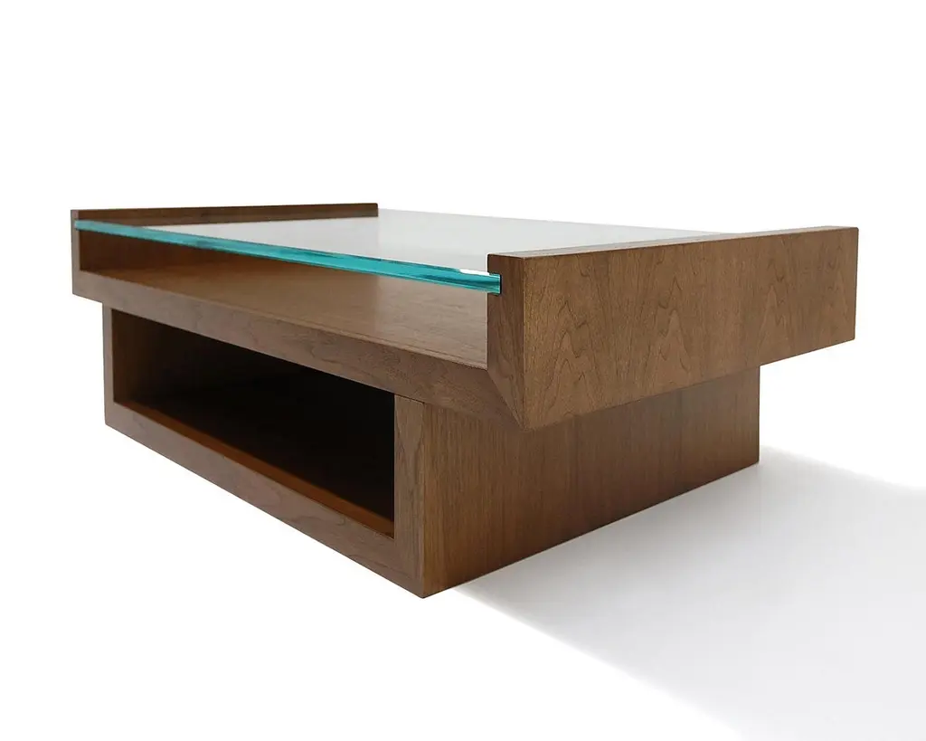 Hinge Coffee Table - Walnut With Glass Top Custom