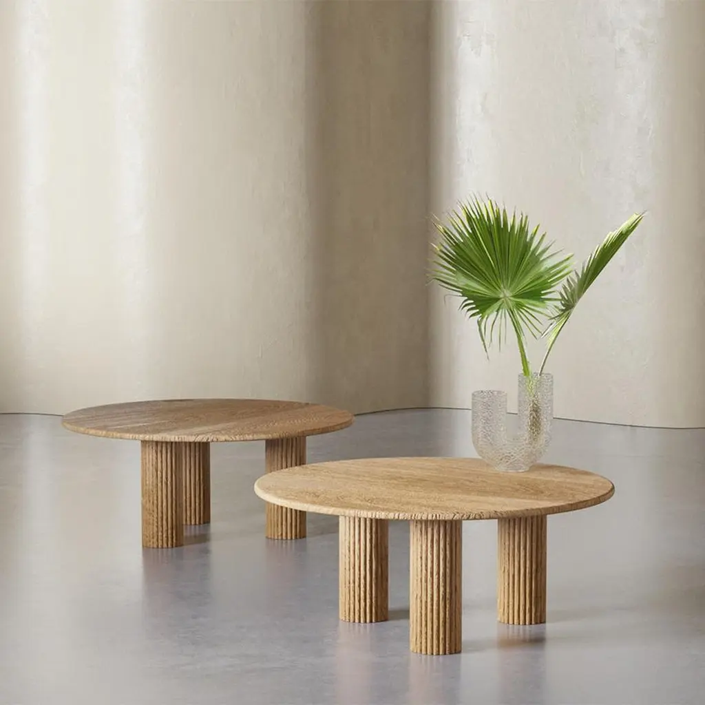 The modern and simple design consists of two coffee tables that save internal internal control space. Each piece is used as a service table by pulling the seat. Solid wood is designed as a durable element that is rich in texture and provides long-term use. Since it is natural wood, each product may vary according to the reference color.