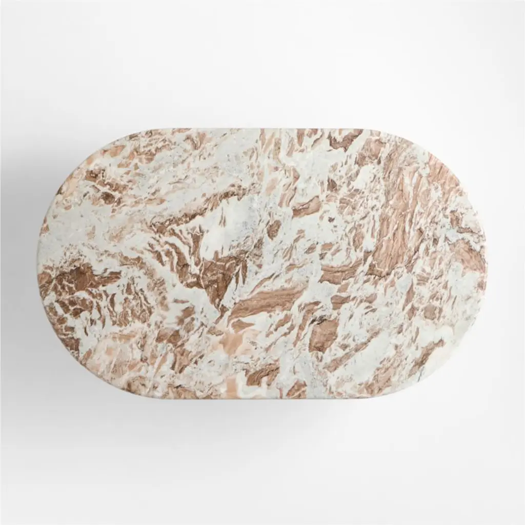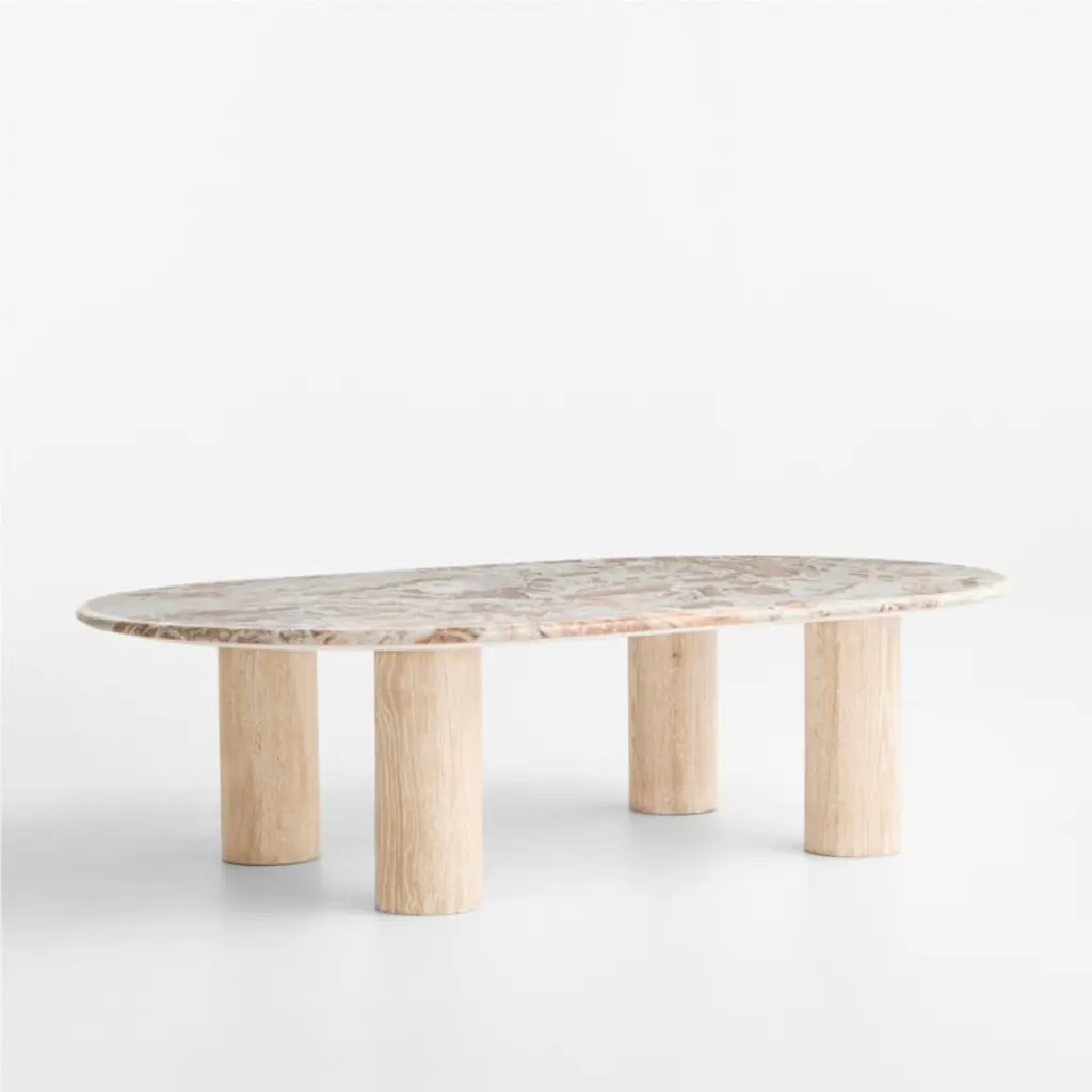 Homage Marble And White Oak Wood 60" Oval Coffee Table