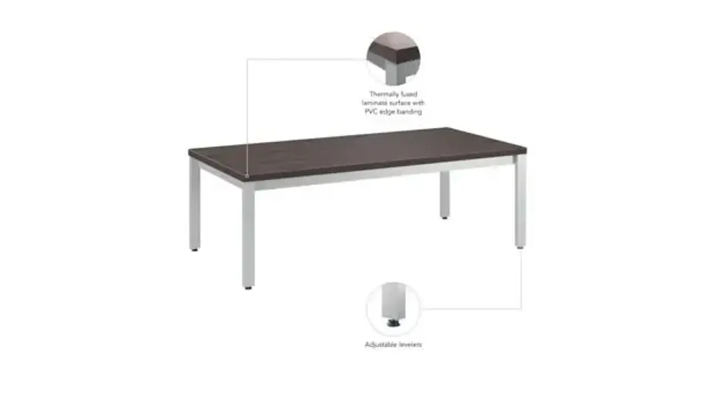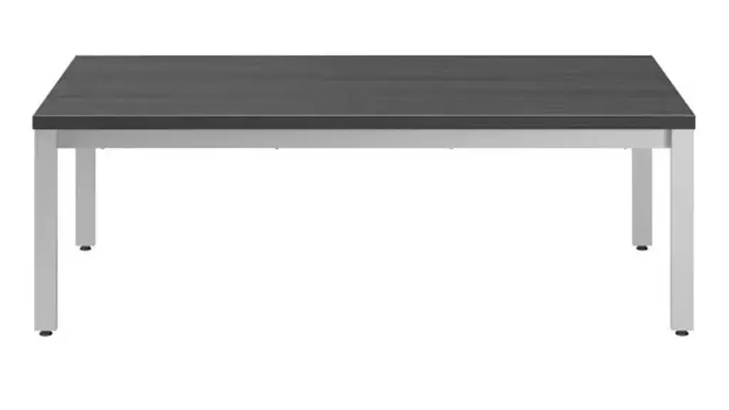 The Bush Business Furniture Arrive Waiting Room Coffee Table is an ideal choice for creating a reception area that's stylish, practical, and built to last. Highlighted by its durable design that withstands years of regular use, this modern coffee table is right at home in a commercial workplace, doctor's office, hospital, school, salon, or any other high-use common area. A thermally fused laminate surface with PVC edge banding protects the large accent table from scratches, stains, spills, dings, and other cosmetic damage to preserve its professional appearance. Treat your guests to reading materials, games, and more on an office coffee table that supports up to 50 lbs. The sturdy metal legs also include adjustable levelers for maximum stability on any surface. Available in your choice of several attractive finish options, the Arrive Collection allows you to build a cohesive waiting room or lobby with matching End Tables, Guest Chairs, and Reception Desks (coordinating items sold separately). This rectangle coffee table has been meticulously tested to meet or exceed ANSI/BIFMA quality standards for safety, durability, and performance. Overall Dimensions: 47.6" W x 23.35" D x 15.85" H. Ships ready for easy assembly.