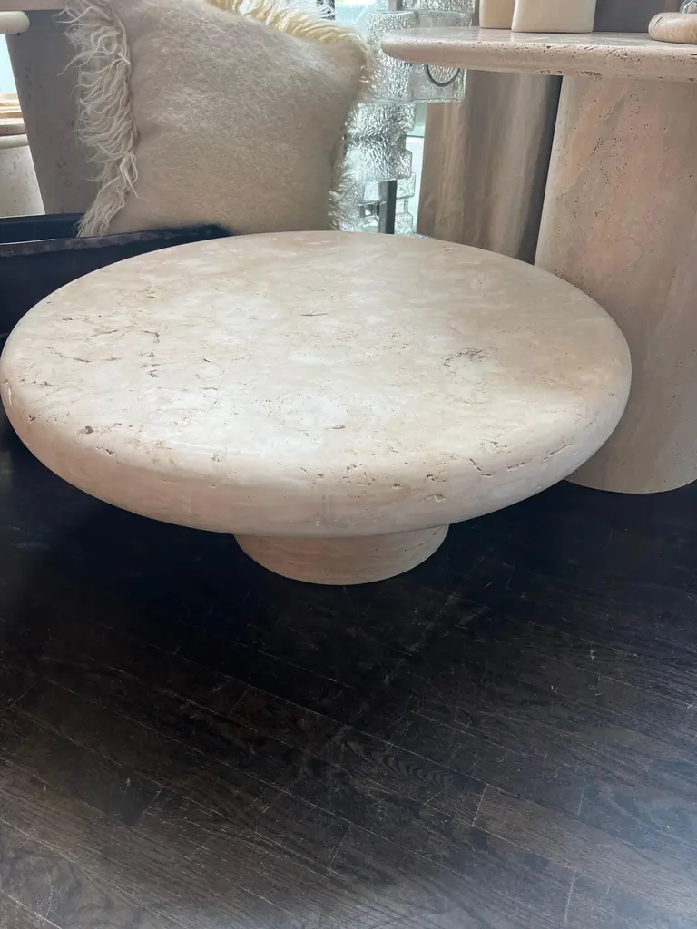 Honed Travertine 35'' Round Coffee Table By Le Lampade