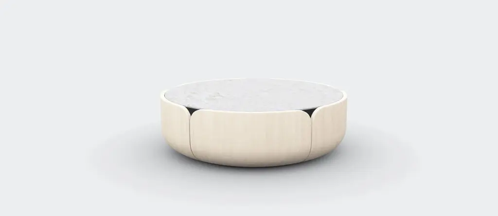 Hornbeam Natur Bianco Namibia Bloom Coffee Table M by Milla & MilliSigned by Maša Vukmanović, Jelena Lukač Kirš, Jakov ŠrajerDimensions: W 100 x D 100 x H 30 cm Materials: Hornbeam Natur, Black Metal, Marble Bianco Namibia. Bloom Coffee Table:Flowers are one of nature's most delicate things of wonder. So enchanting, yet so fragile; inspiring, but short lived. Bloom coffee table manages to immortalize that beauty, to encapsulate the magic of a living flower in a fascinating creation of solid wood and marble. It is a single flower that transforms your space. Forever.Milla&Milli started out as a brainchild of two artlovers; a shared dream of two souls in love with design, wood and each other. And to this day, that love and passion is still clearly embodied in every masterpiece we create.Meet Ksenija and Ivić Pašalić, two halves of one Milla&Milli heart and the driving force behind everything you have seen so far.A CELEBRATION of design:"We truly live and breathe design. We love it, respect it, encourage it, promote it. We put it at the forefront of everything we create and with the help of meticulous craftmanship, we build our story through it.Meet our leading designers, Jelena Lukač Kirš and Jakov Šrajer, and the company's art director, Maša Vukmanović."AN ODE to Mother Nature:"We consider ourselves as doers first, talkers second. So, our ode isn't one of words, but of heartfelt and decisive action. And one you are invited to join. Our pledge is to create new life, to plant a new tree for every piece of furniture you buy. Thus, the park forest growing around our facilities stands as a living and breathing reminder of our shared mission — to protect and respect our Mother Nature."