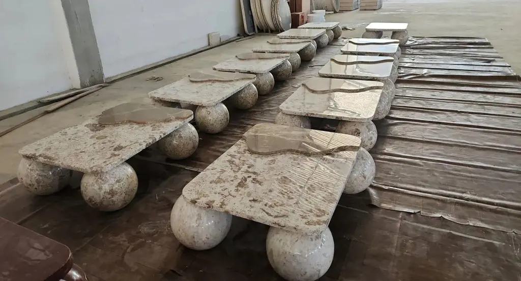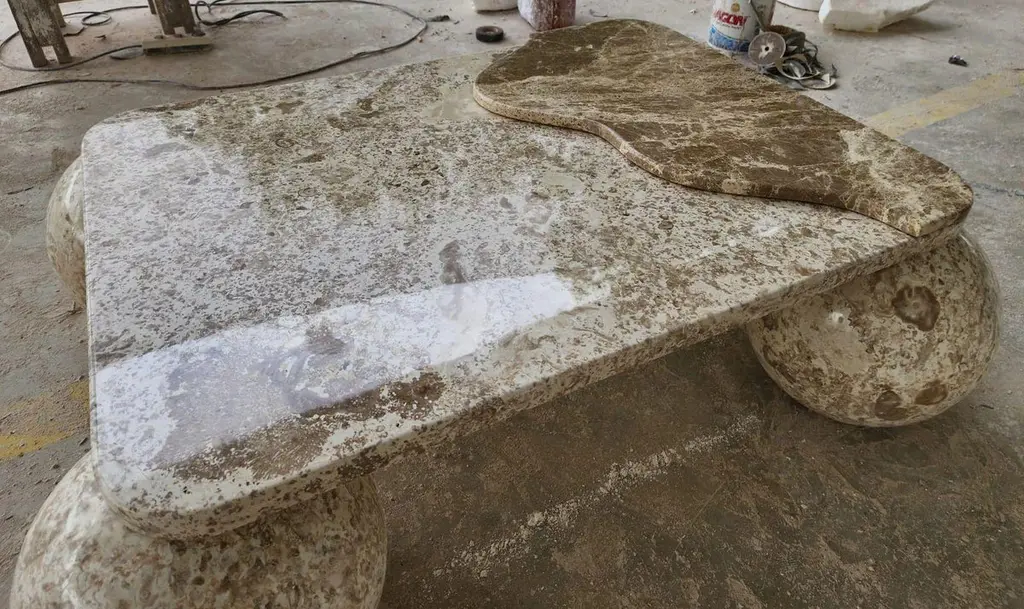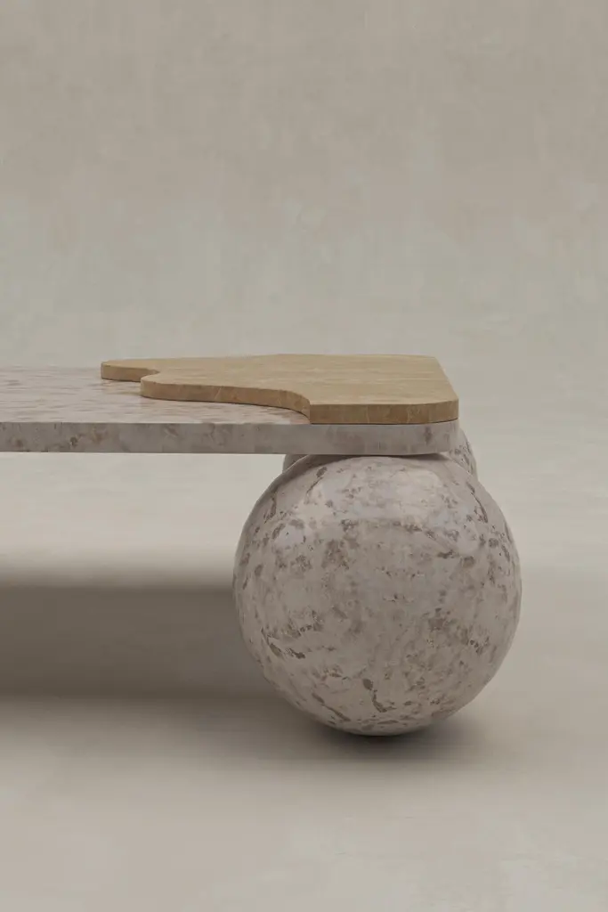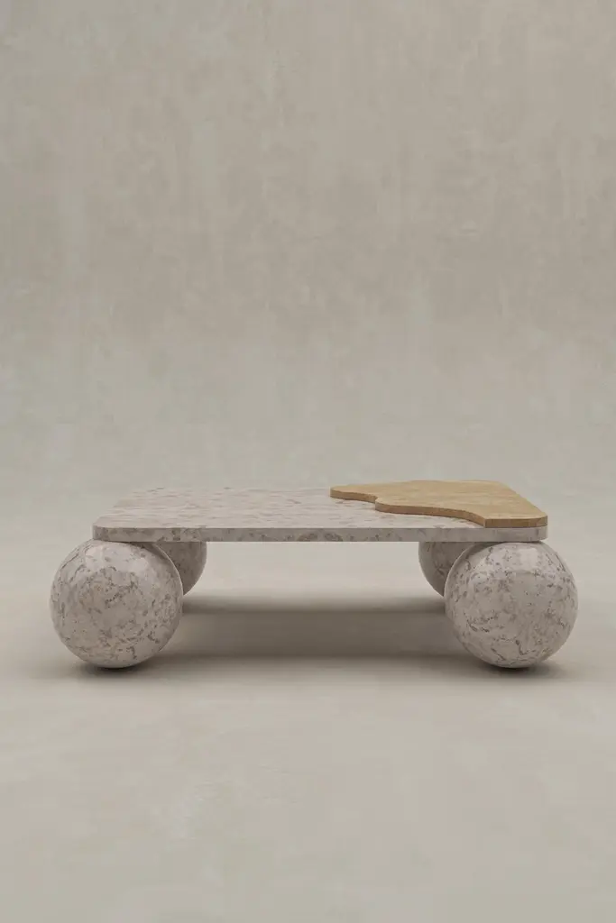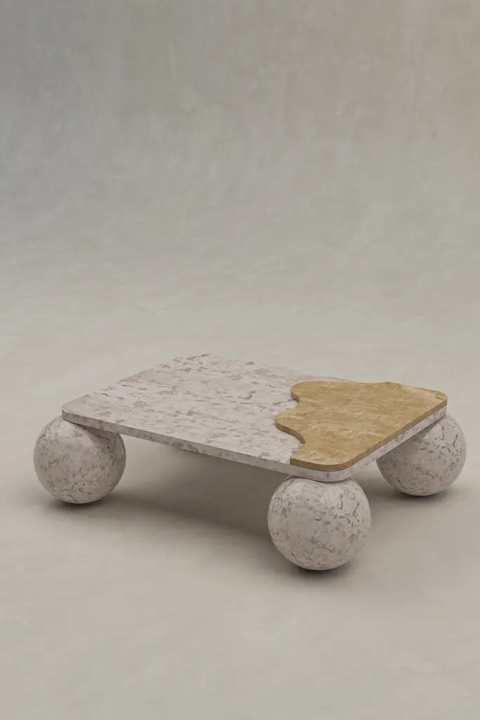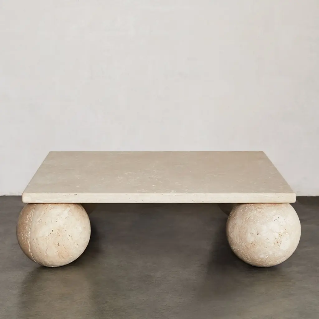 House Of Slim Coffee Table - Marble Sphere Legs Coffee Table - Crema Marble
