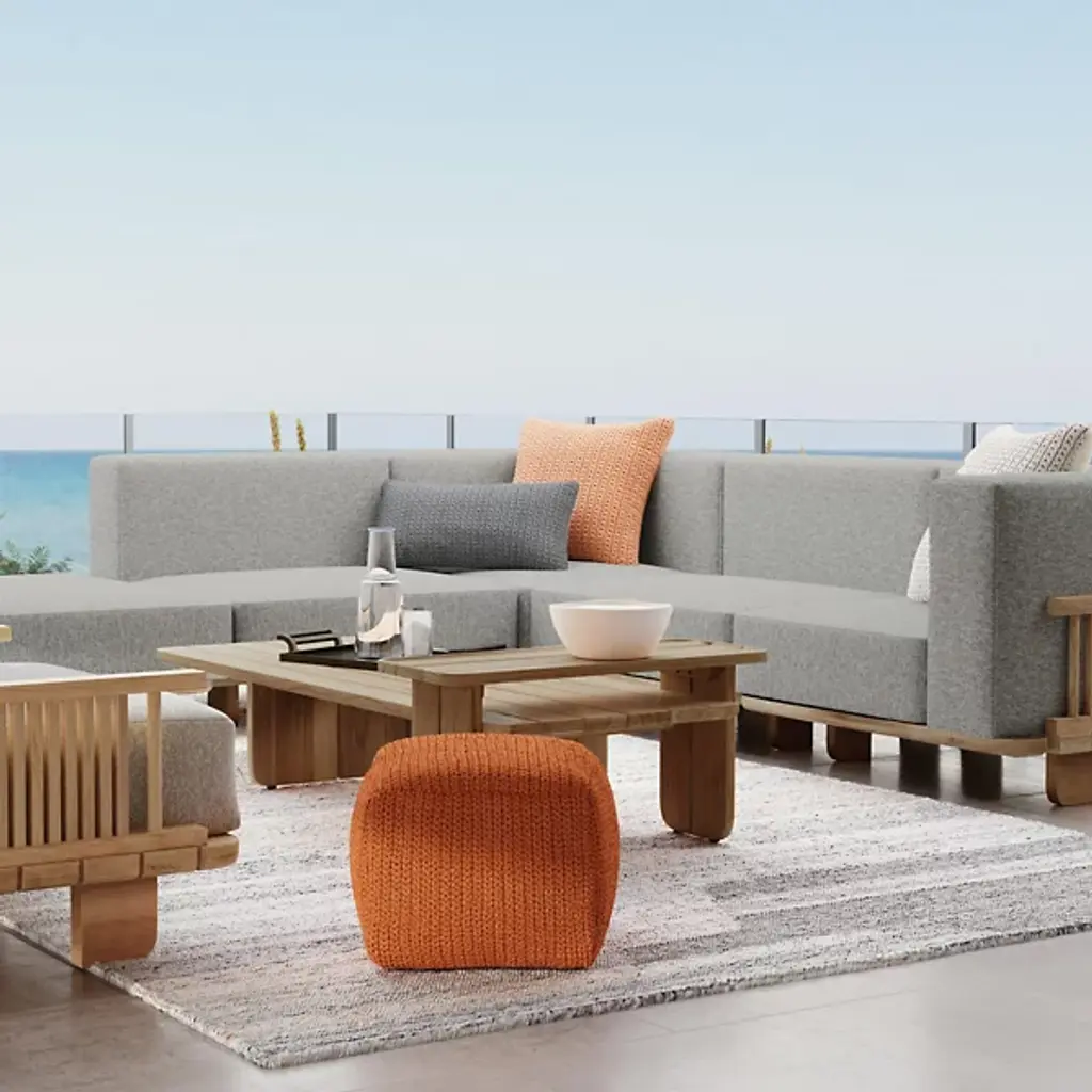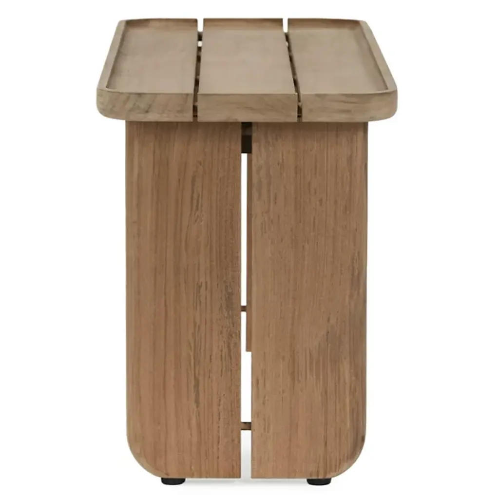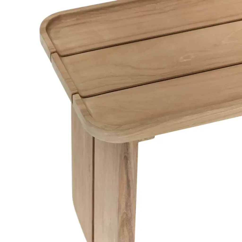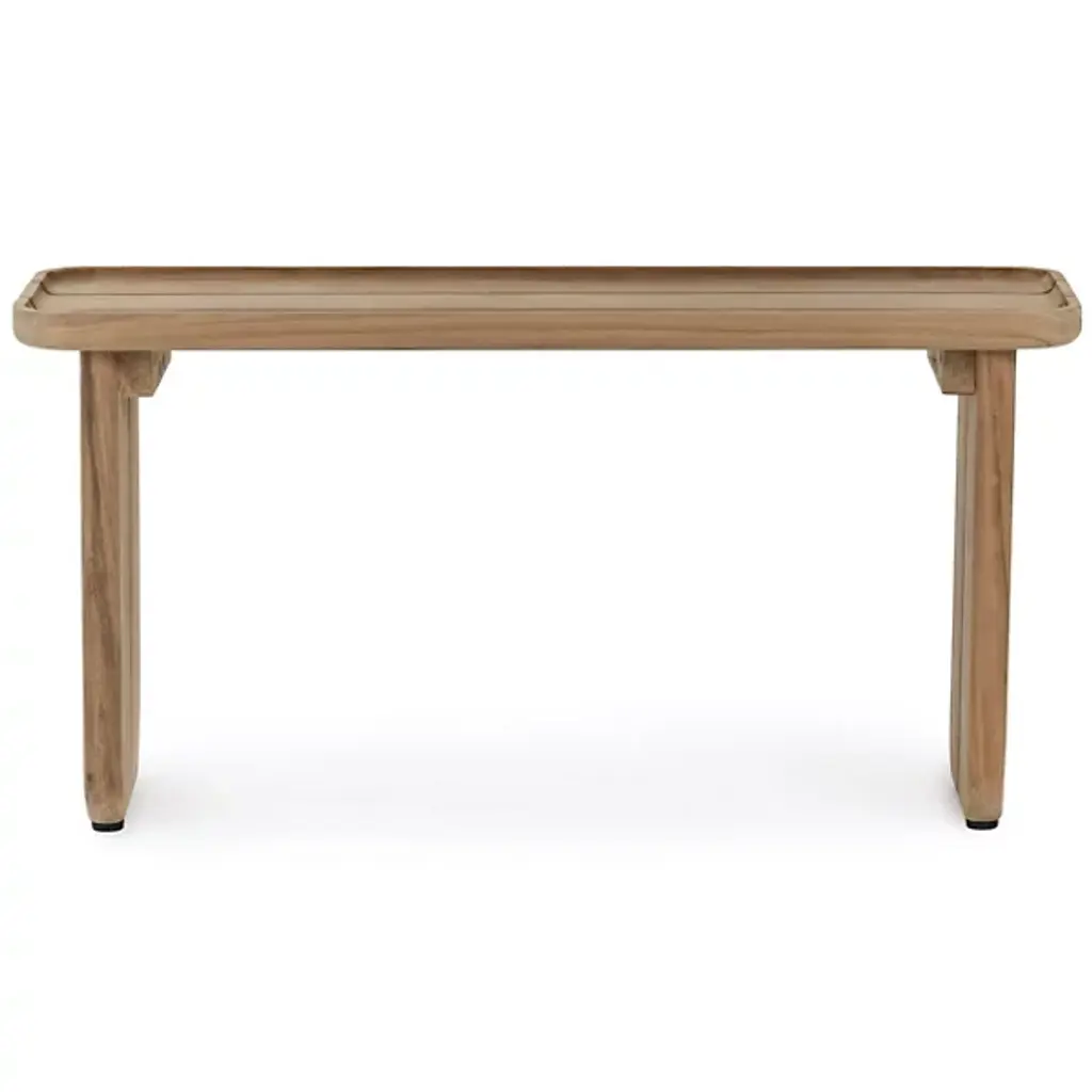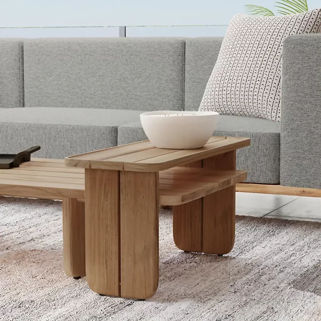 The Hudson Outdoor Coffee Table from Classic Home celebrates the raw beauty of teak in an outdoor setting. Weatherproof and naturally resistant to the elements, this table features a hand-finished plank design that feels wonderfully organic. Adjustable levelers ensure stability on uneven surfaces, while plastic floor protectors shield your deck or patio. The table's matte finish lets you appreciate every natural detail in the wood grain. Perfect for morning coffee rituals or sunset gatherings, this piece brings the comfort of indoor living to your outdoor sanctuary.