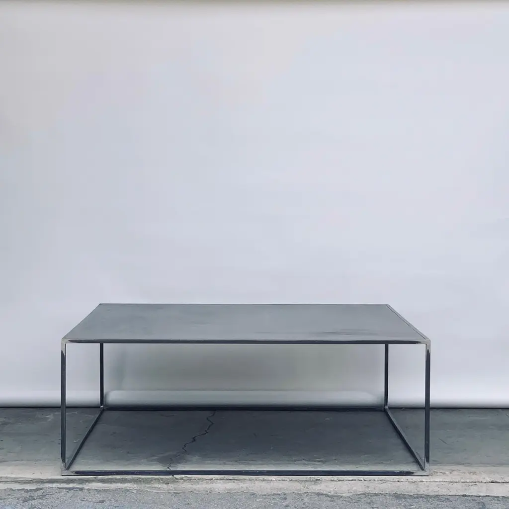 Huge Minimalist 'Filiforme' patinated steel plate square coffee table by Design Frères.