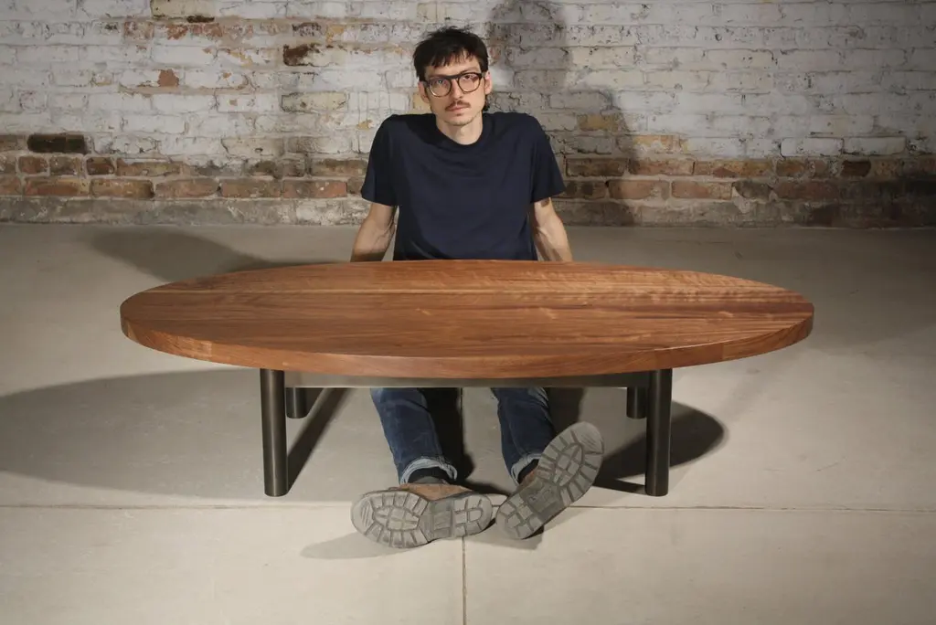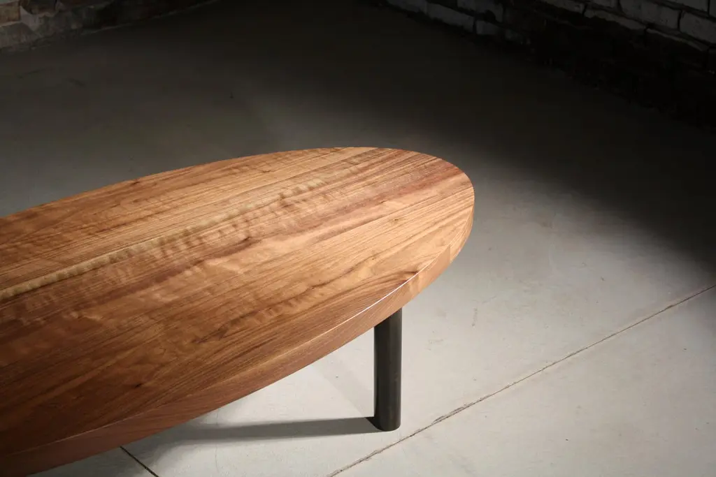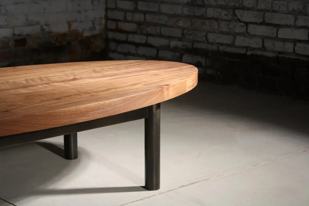 shown in natural walnut and blackened steel with an oval topMeasures: 60" wide x 28" deep x 14" highThe Humboldt low table by LAYLO is a study in simplicity. Emphasizing stability, proportion, and a high level of craft - this coffee table can be easily customized in finish, size, and shape to suit any condition. A welded, classic four leg base secures a solid wood top that will age gracefully as it develops a natural patina from use. Finished using a low-VOC hardwax oil for environmentally and user friendly maintenance. Welds at the legs of the metal base are carefully smoothed by hand to create an attractive fillet that catches the light just right. LAYLO's unique blackened steel patina allows the beauty of the industrial metal to show through and highlights the finish achieved through patient workmanship.Available in custom finishes and sizing.