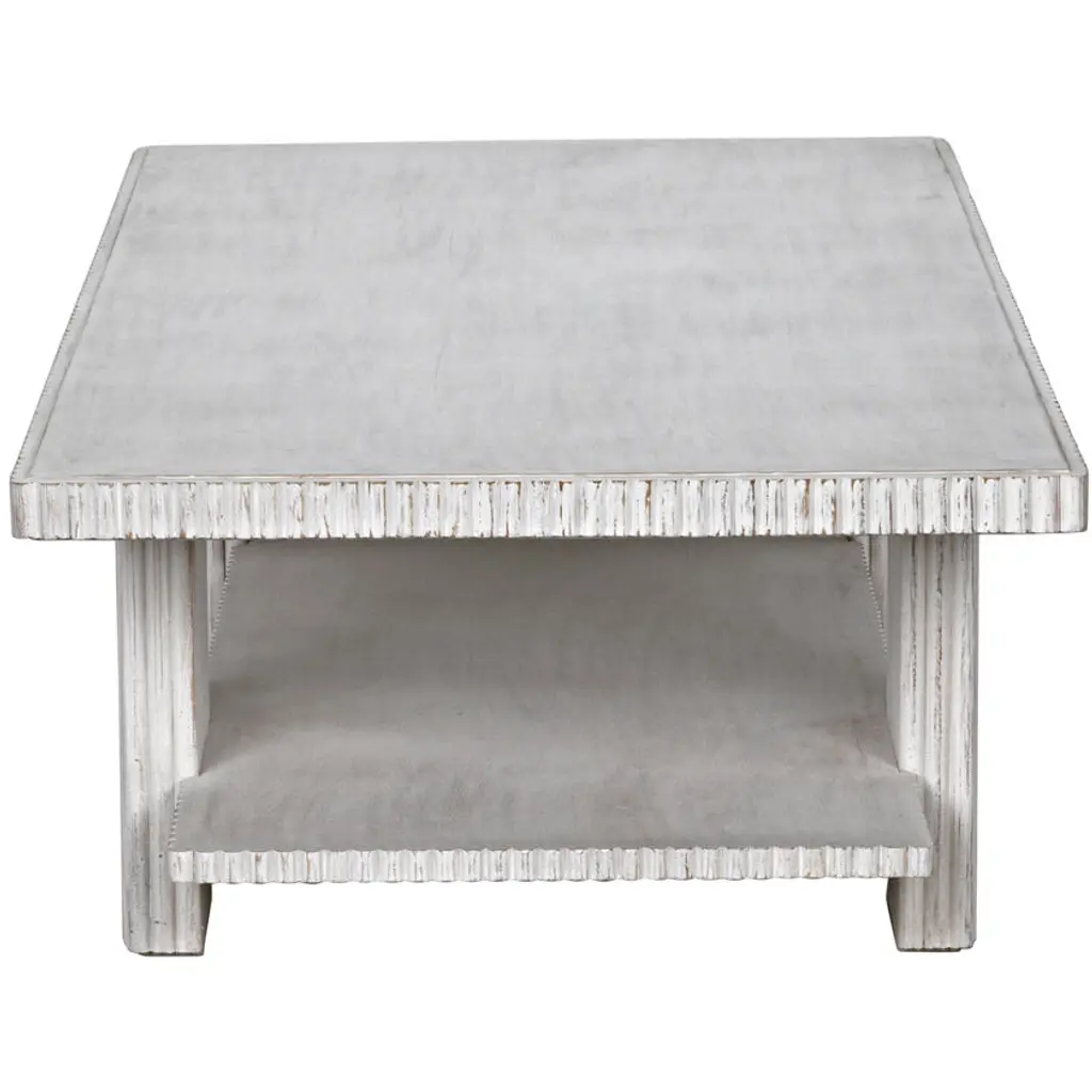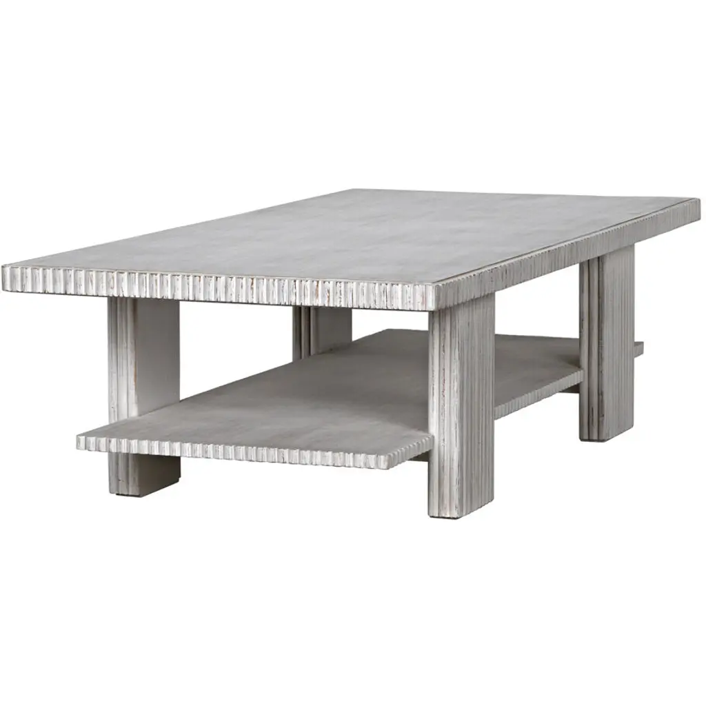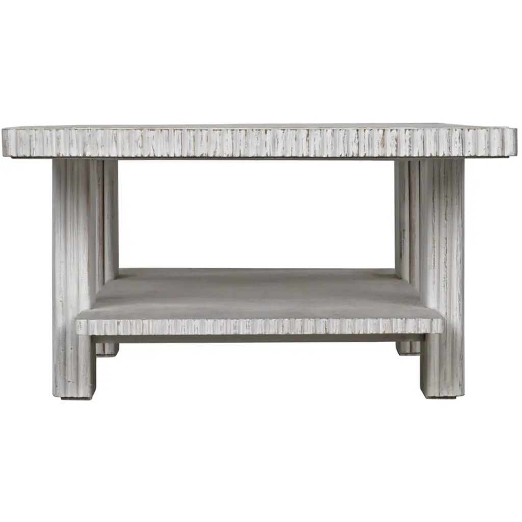 The Humphrey coffee table is a beautiful display of design virtuosity, artisan crafted in mahogany wood and finished in white wash for a modern, elegant, and contemporary look.