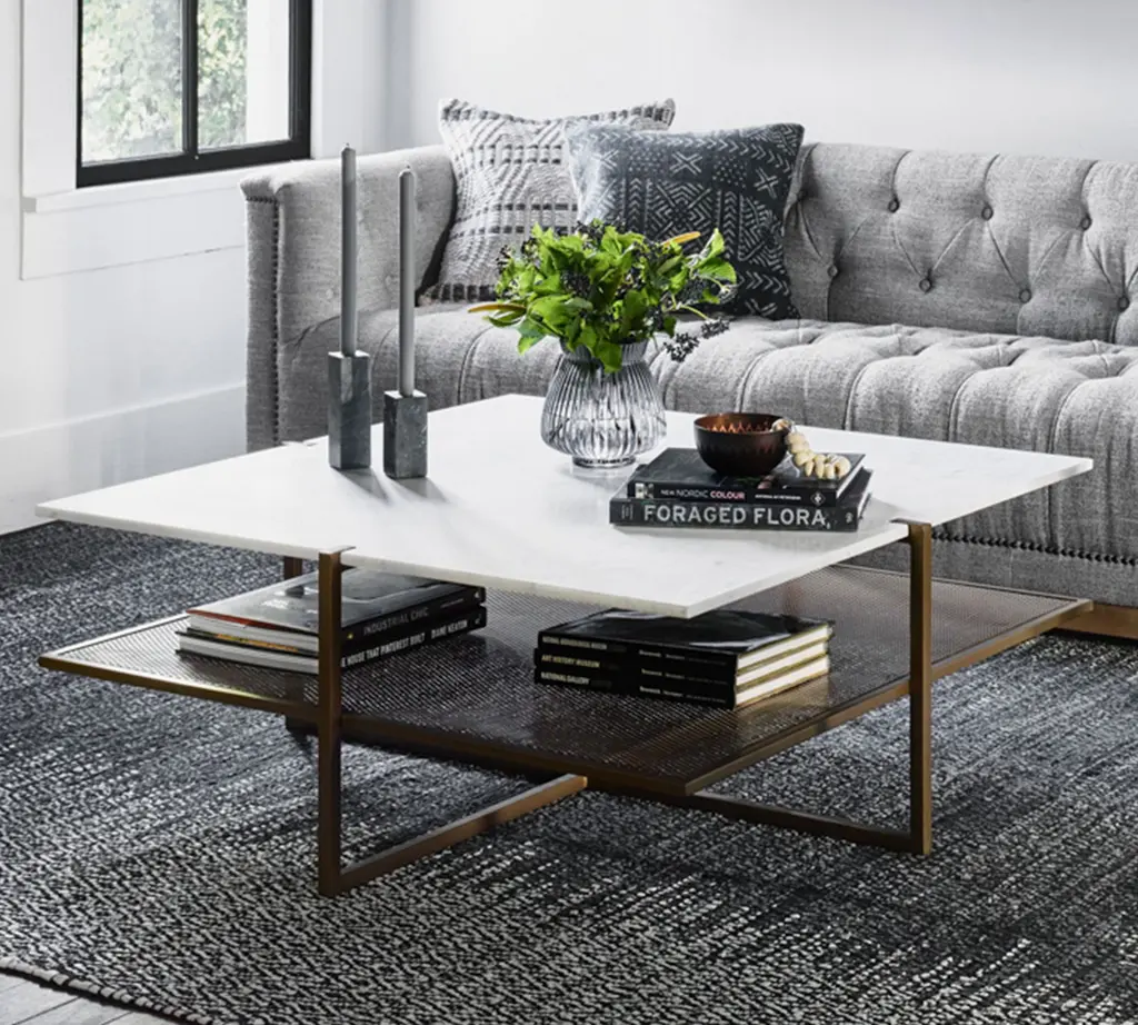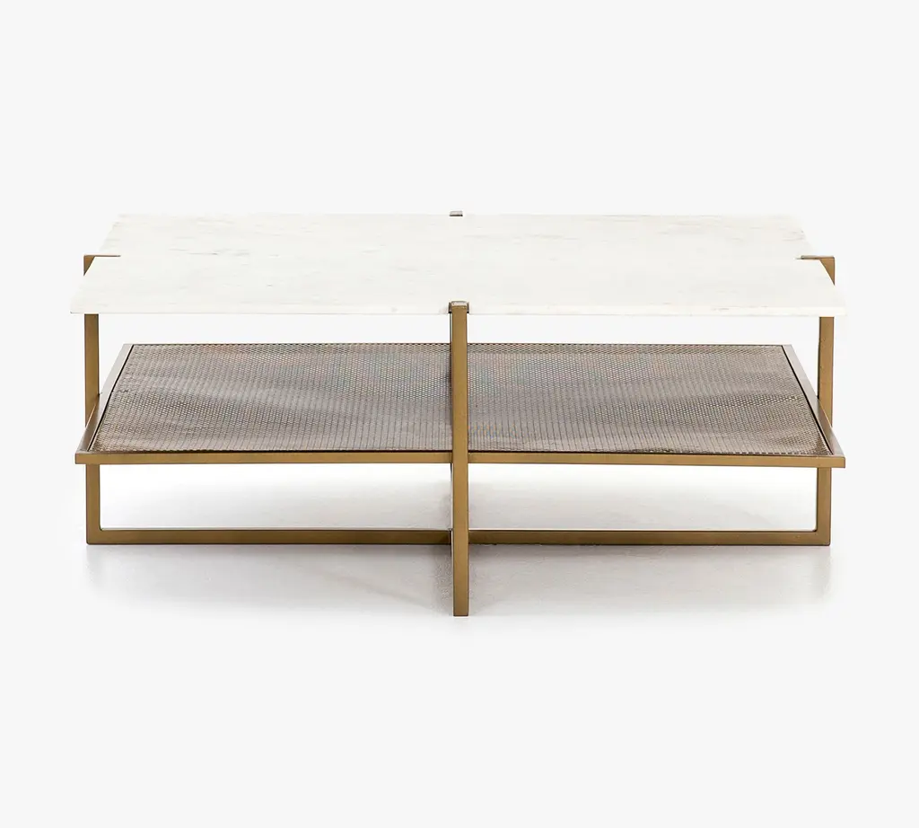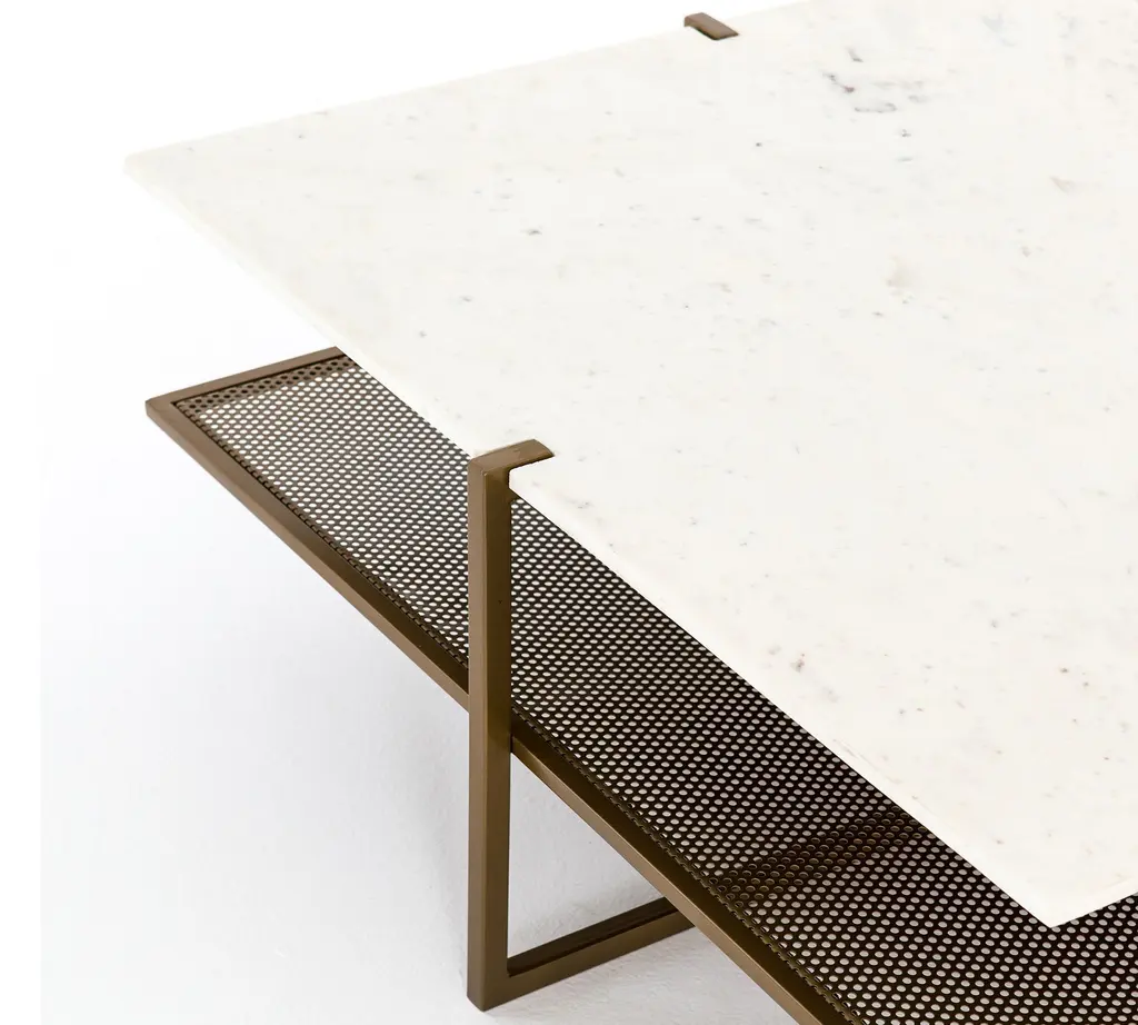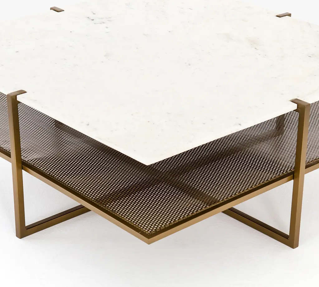 Polished marble on a finished brass base gives this table its chic style. Hyla is finely handcrafted to work with classic or more modern decor styles.