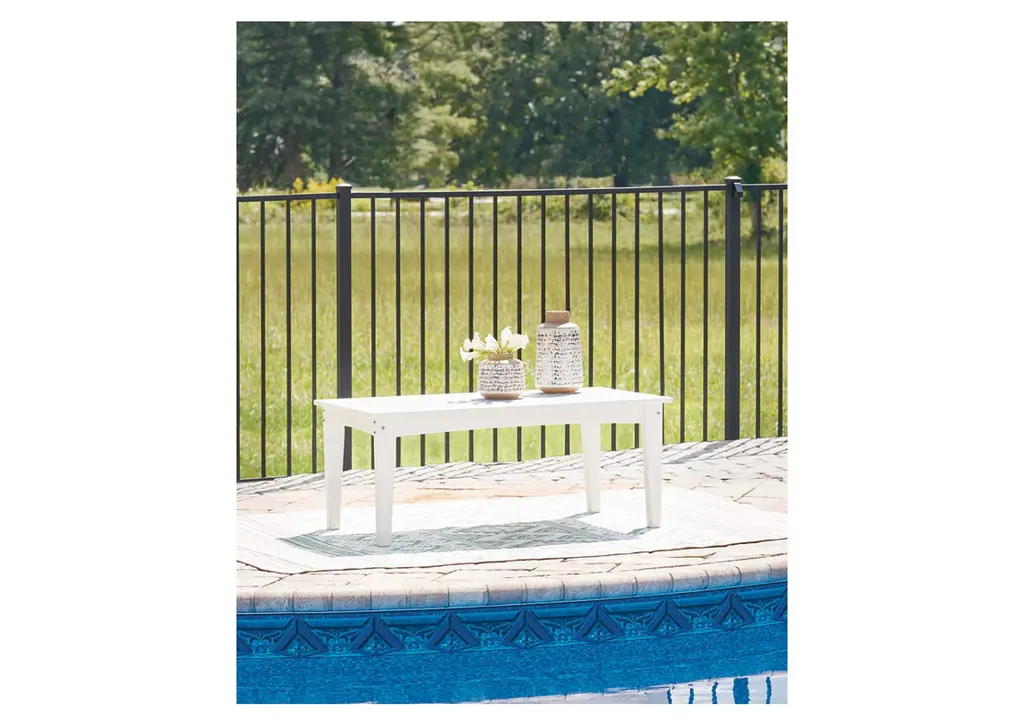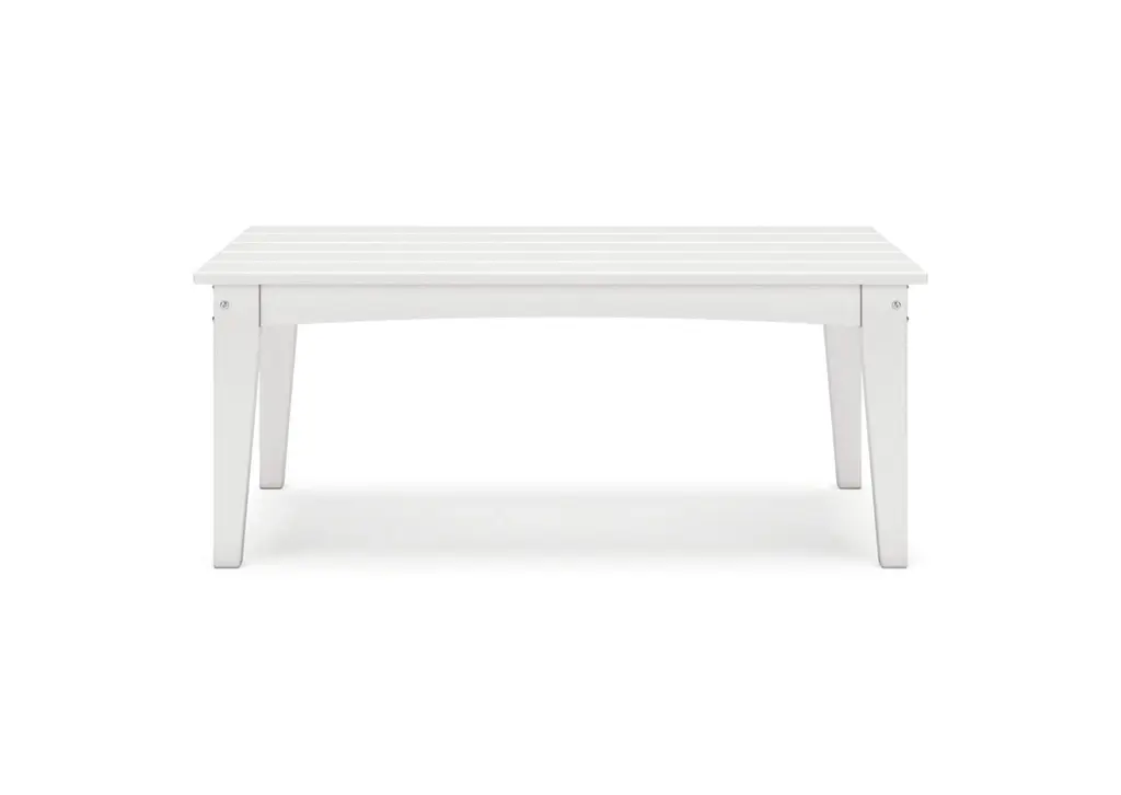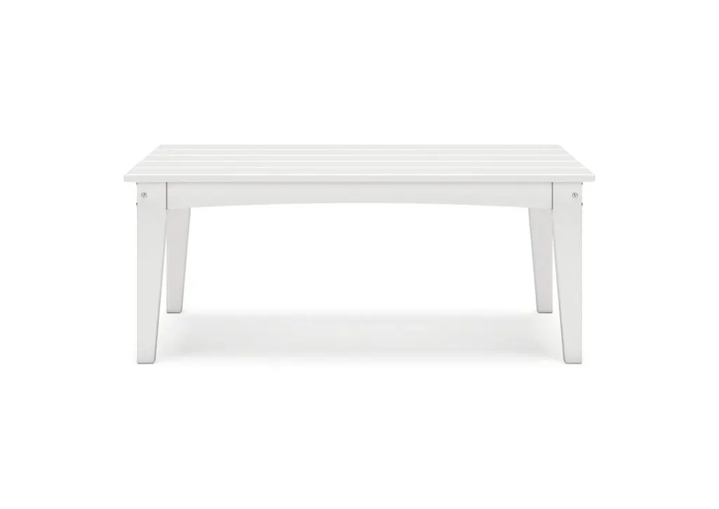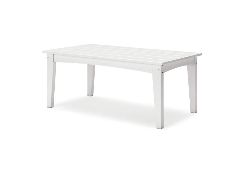 Drift into outdoor entertainment bliss with the Hyland Wave coffee table. Dressed in a bright white for a fresh feel, it weathers sunny summer days and cozy winter nights with durable MEGA-TUFF® HDPE material. When it comes to form and function, the table's rain-shedding slatted design simply goes with the flow. Use it to hold outdoor decor, drinks or snacks. Weight 48.000 lbs. (21.6kgs.)