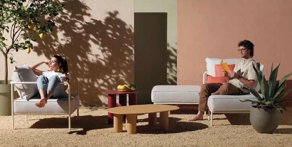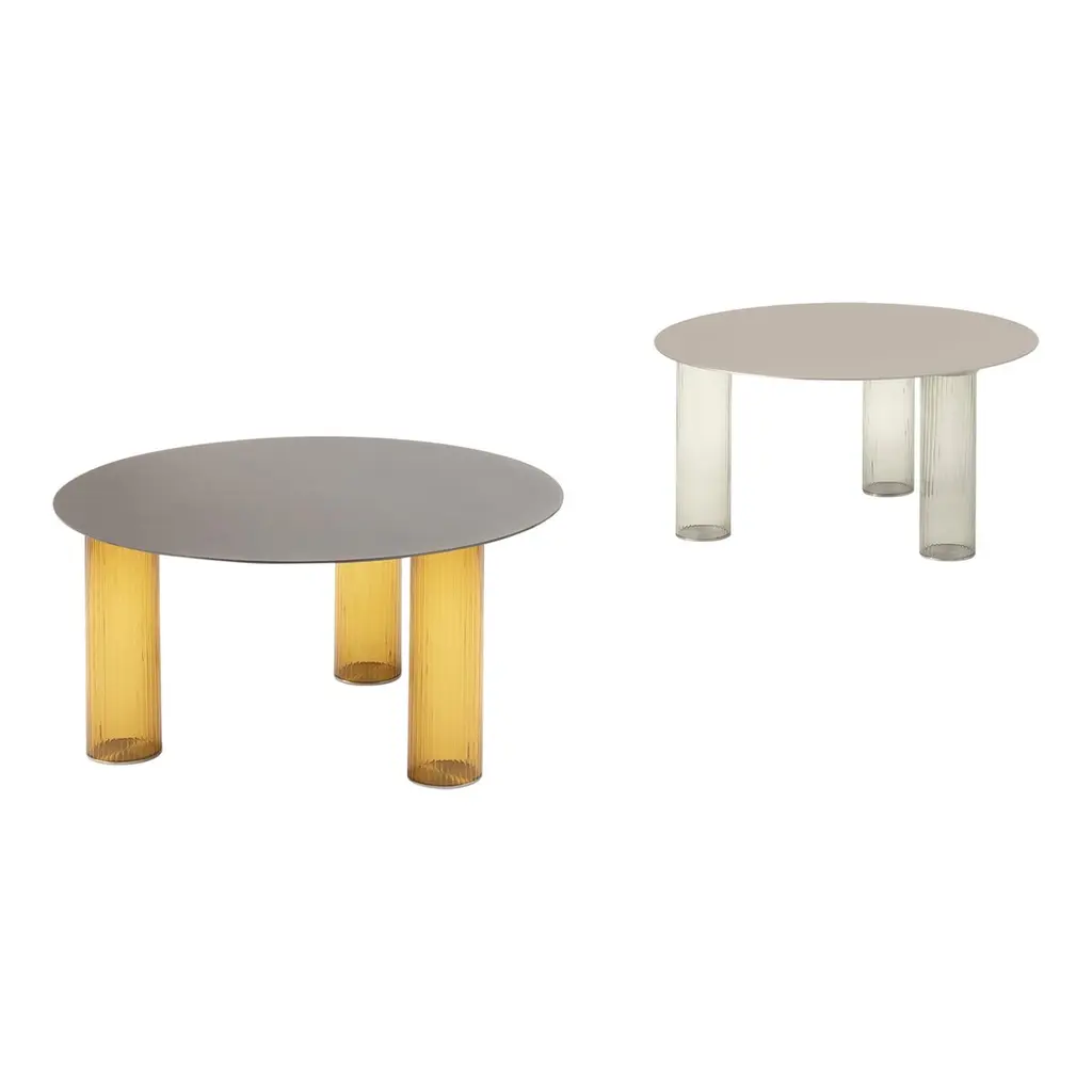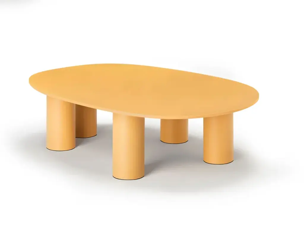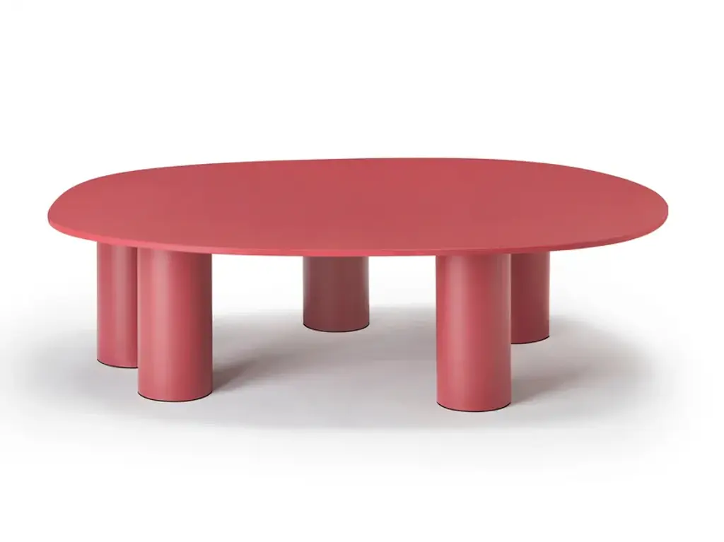 The result of playful experimentation, the Hyppo coffee-table family is designed for outdoor use but adapts with versatility to indoor spaces. The inspiration, clear even from the name itself, is linked to the morphology of the hippopotamus and is revealed in the design of the aluminium legs, large and sculptural. The contrasting top, made with coloured paste laminate, stands out instead for its thin profile and deliberately irregular contour, reminiscent of the animal’s body. Available in different diameters and heights, Hyppo’s variants can be combined to recreate islands of coffee tables, welcoming the placement in any corner or living room. The colour palette, which includes ochre, crimson, quartz green, and petroleum green in a matte finish, also promotes the complementarity of the combination.The family of coffee tables Hyppo comes from the desire to offer a series of extremely versatile and functional complements, designed for outdoor use but also suitable for indoor spaces, and also from a formal, at times playful, experimentation that characterizes the project.