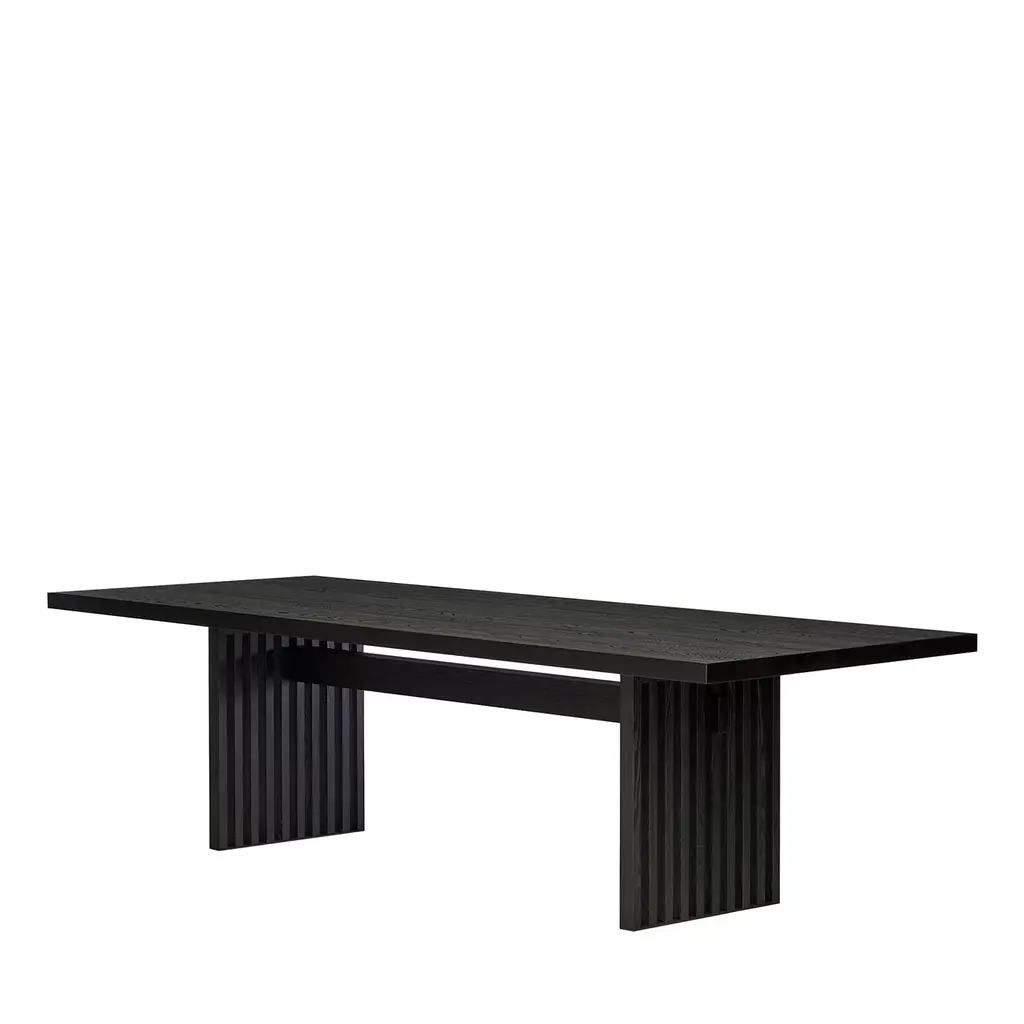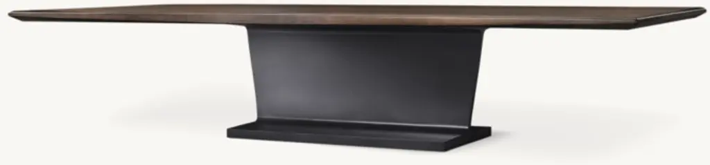 Our table by modern design visionary John Birch reimagines the utilitarian I-beam support structure in a sleek, sculptural silhouette. Seamlessly bringing together the warmth of wood and the coolness of metal, a slim vertical plane joins the simple, geometric base and wood top, its crisp contours softened by gently tapered edges.SHOP THE ENTIRE COLLECTION
