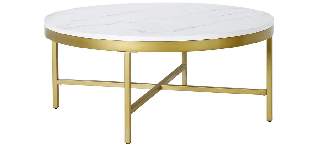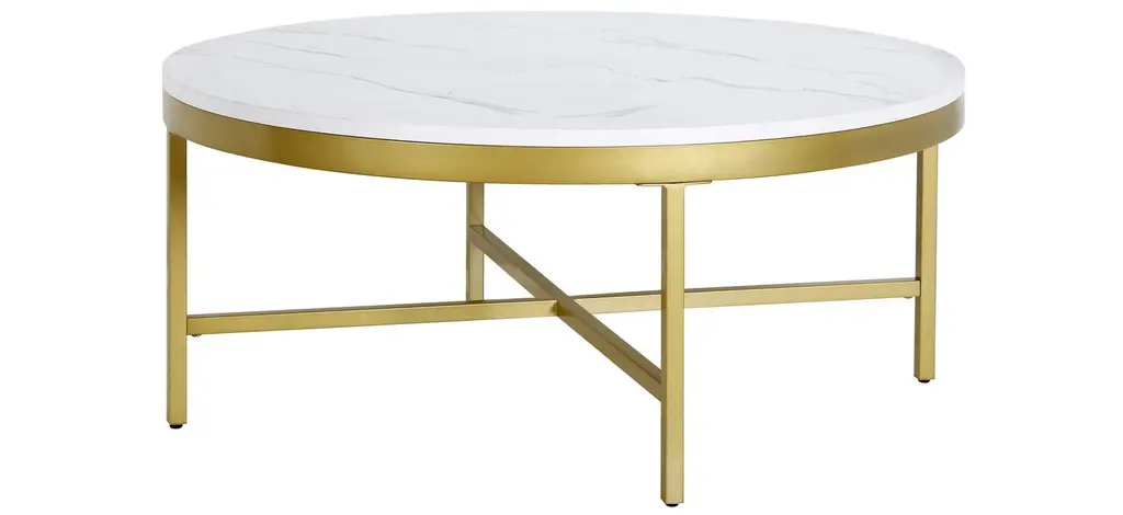 Simple and stylish, this Iani coffee table is a contemporary take on a classic design fits perfectly in your living room. Its understated elegance accentuates your style so every angle is magazine ready. Easy to assemble and easy to style, the faux marble top and neutral metallic finish make it the perfect addition to your living room or den ensemble.