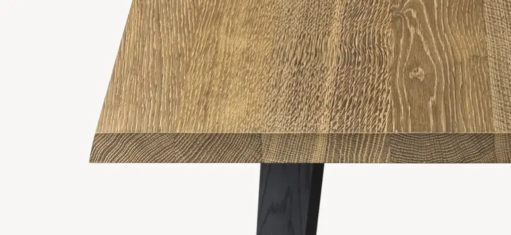 Il Naturale is a low table with top and base in solid oak dried with natural proceedings. Legs are always black painted.The key inspiration for Il Naturale was to create a dining table with a puristic and straight shape that highlights the unique character, natural structure and beauty of solid wood with all thenatural knots, grains and texture.Il Naturale reflects the know how of real traditional craftsmanship in wood processing.The solid wood finish realized by Schotten & Hansen has been naturally dried in order to keep its original surface.The applied precious substances made from resins, oils and waxes, penetrate deep into the wood which leads to a natural colouring of its surface, changing it into the finest hues, taken from nature’s palette.