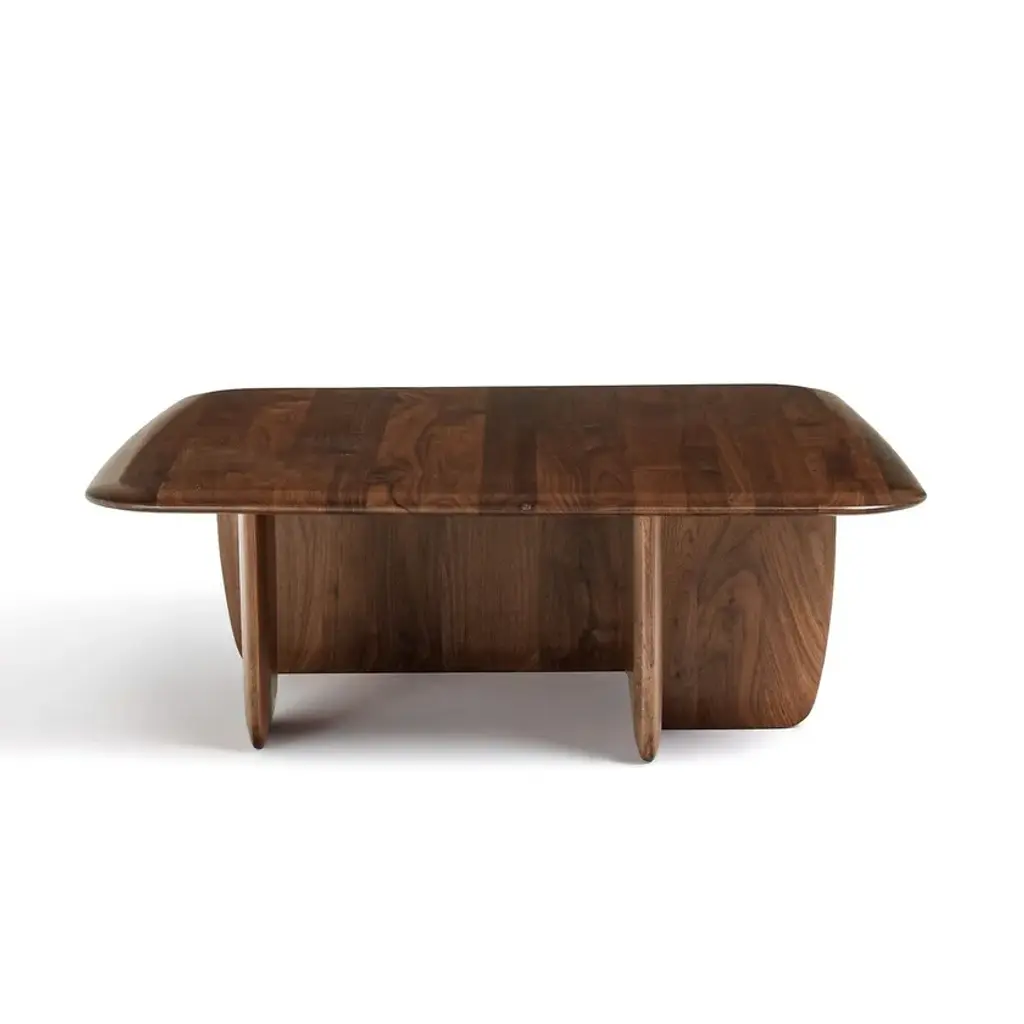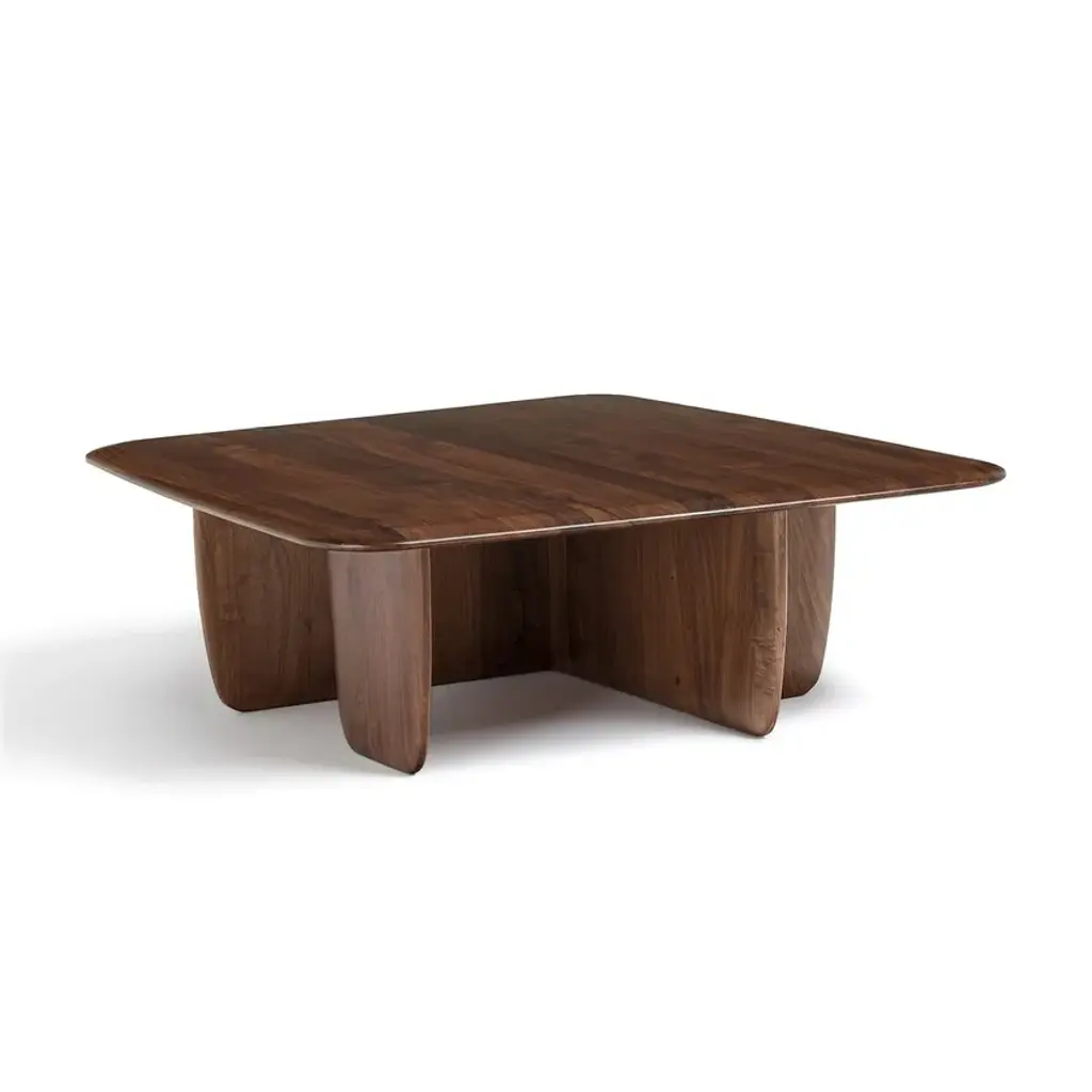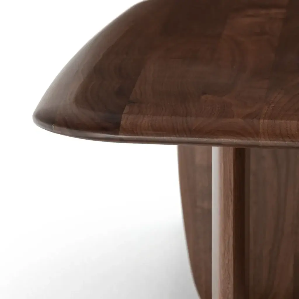 Iloss low tables. When the nobility of solid walnut is combined with the softness of an organic design. The top with bevelled edges and the base inspired by aeroplane wings show a line that is as contemporary as it is timeless. Low tables by AMPM.In solid walnut with polyurethane finishOrganically shaped top with bevelled edgesLegs with wing profile finish