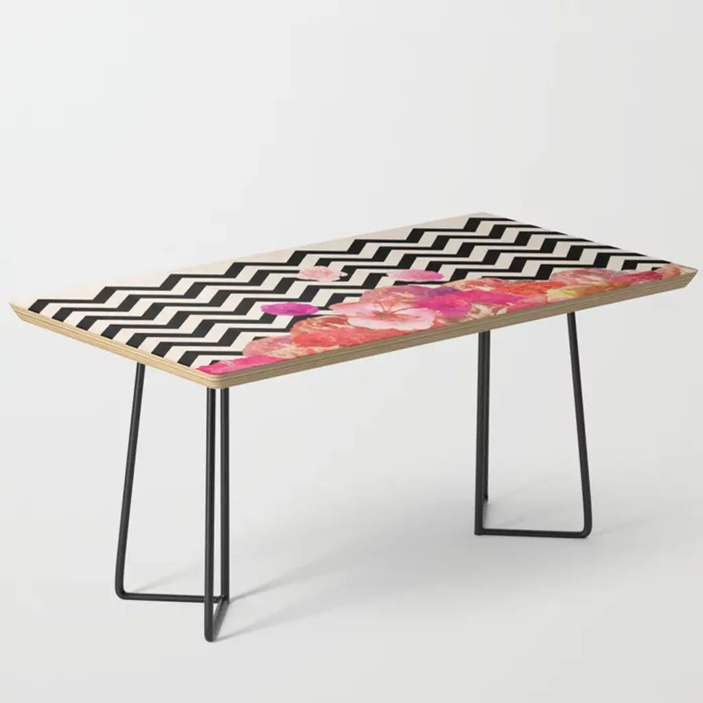 35.75" x 17.75" x 17" (H)Baltic birch table top with beveled edgeHigh quality print with satin finishSteel legs available in black or goldAssembly requiredEvery order is made just for youSHIPPING: Items are made to order and typically ship within 3-4 business days. Click here for more information about delivery options.Furniture sales are final. Click here for more information on returns.