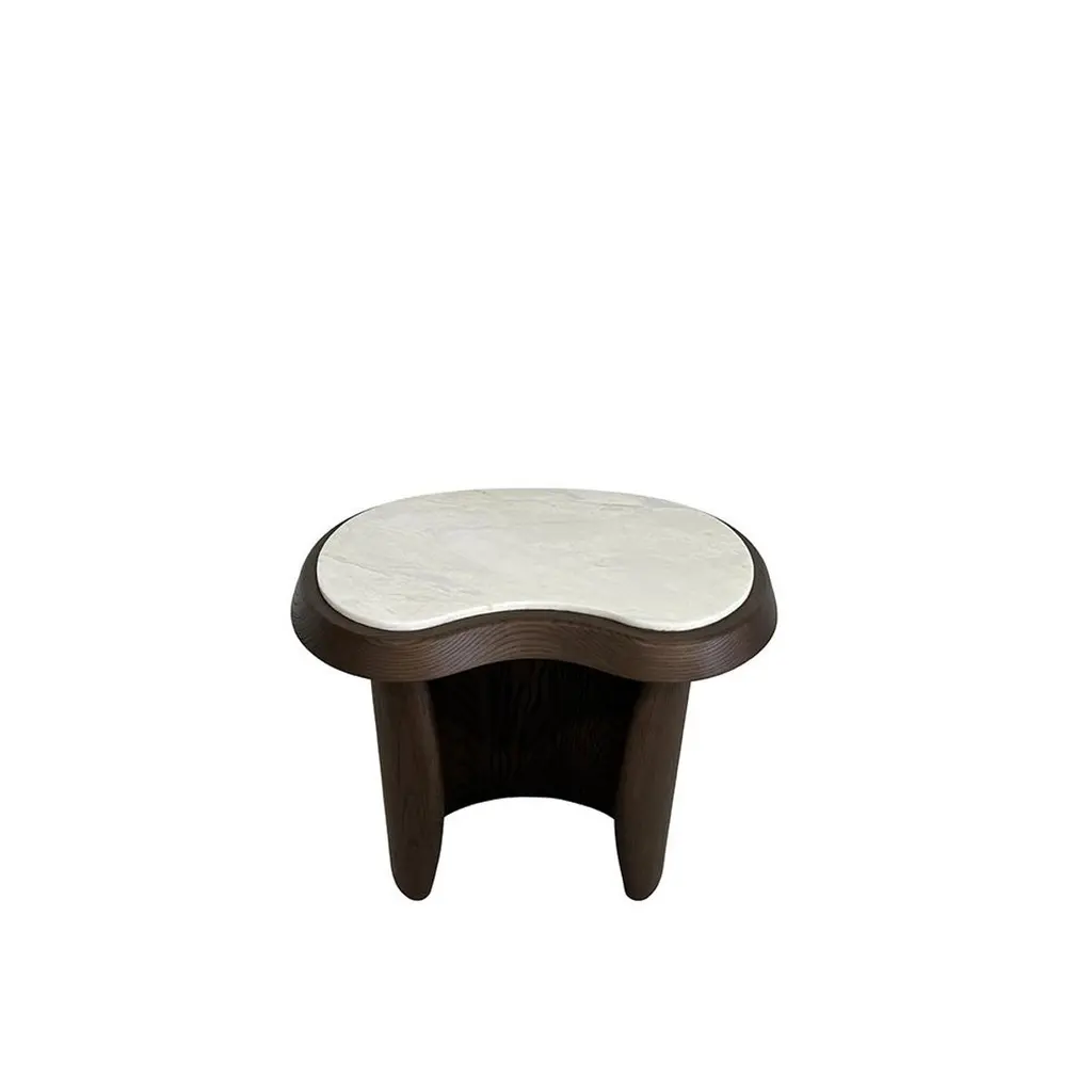 drawing inspiration from the concept of infinity, symbolizing infinite possibilities and a seamless blend of nature and artistry, the new coffee table is crafted from solid ash timber and complimented by the exquisite touch of an organically-carved white jade marble top. it is a piece that exudes luxury and timelessness.