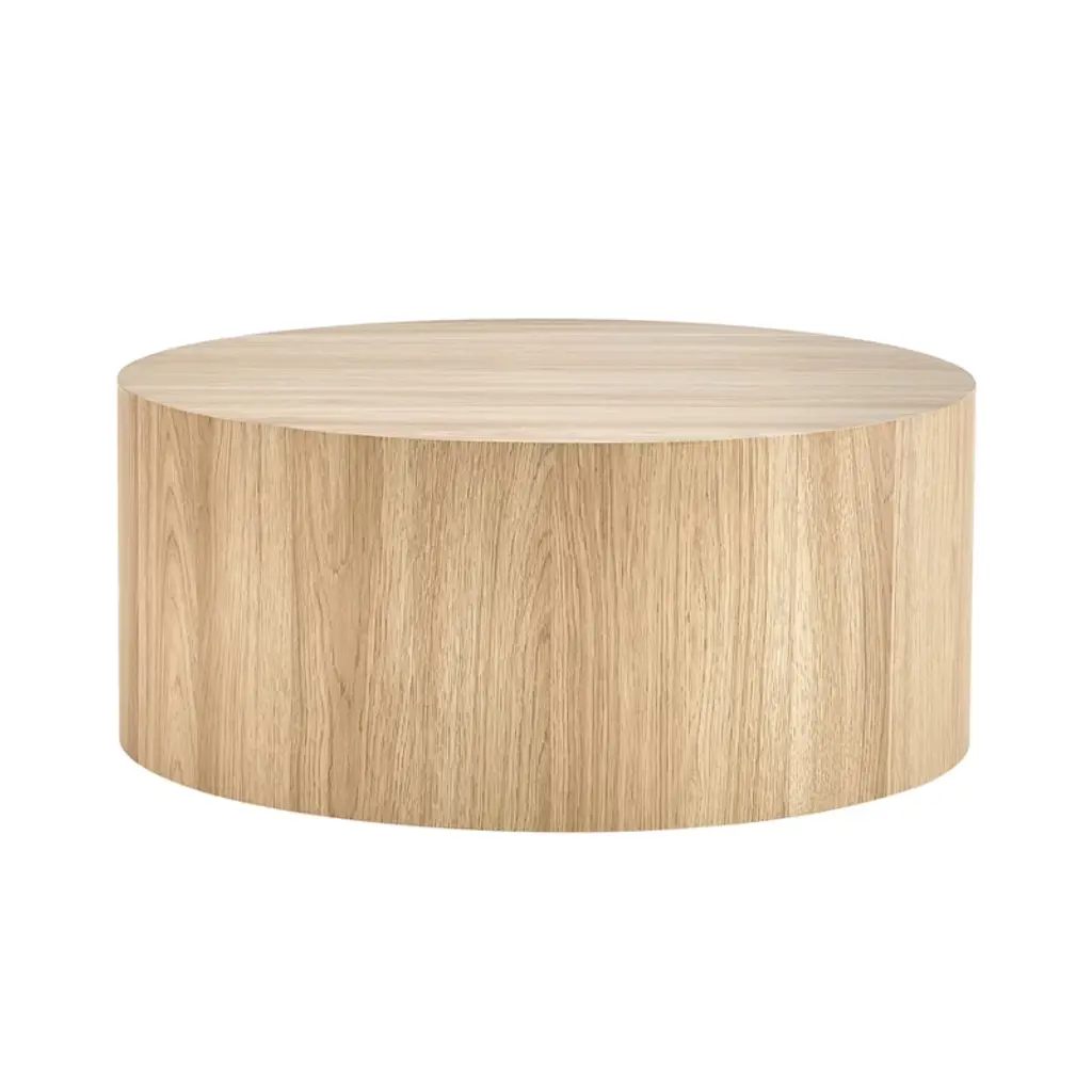Infurnic Coffee Tables Wood Round Cylinder Coffee Table With Natural Wood Finish For Living Room, Beige, 27.5"*27.5"*12"