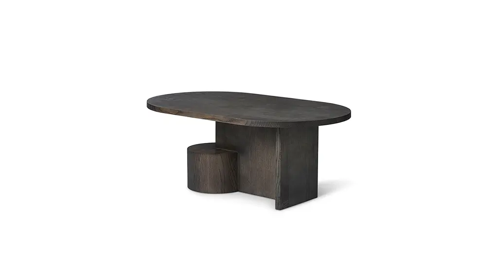 Crafted from FSC-certified solid ash, the Insert Coffee Table is a sturdy yet sculptural piece. Playing with multiple shapes, the oval top rests lightly upon two geometric joints that are anchored by a heavy, cylindrical base. The table is a subtle piece of art in your home that is matched by its functionality as a coffee table. Designed and produced by the Copenhagen-based studio Ferm Living.